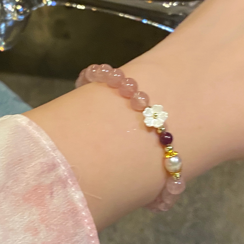草莓晶桃花串珠手链女小众设计感闺蜜礼物2025新款高级感手串饰品