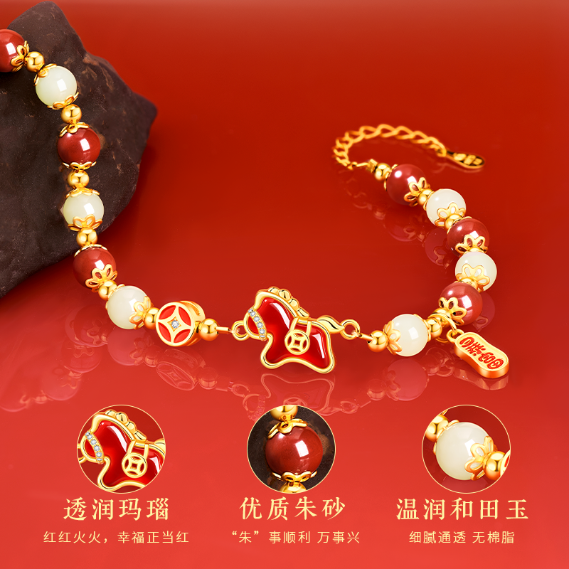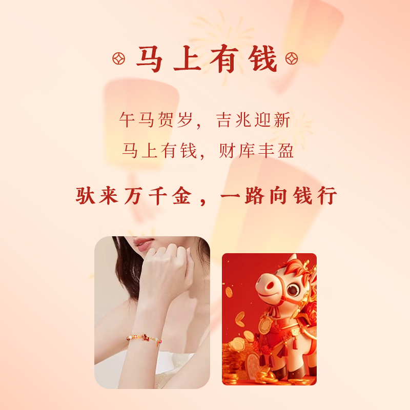 中国黄金央创2026马年本命年手链属马的吉祥佩戴物新年礼物S925