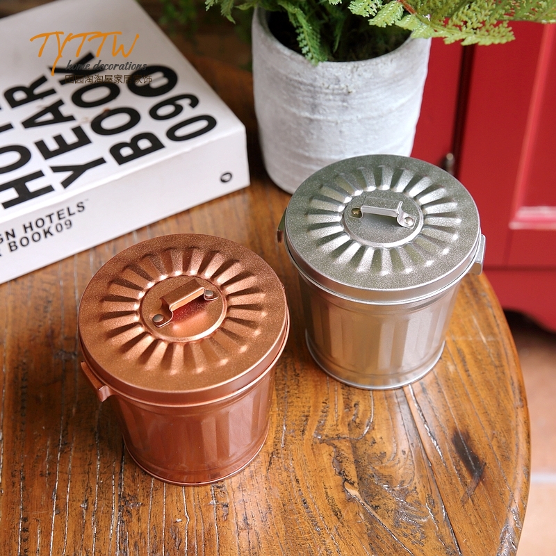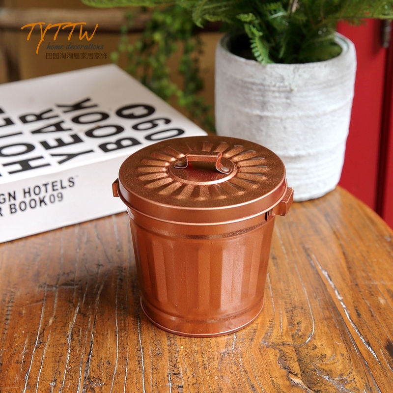田园家居装饰小花桶 小收纳v铁皮桶 迷你彩绘桌面垃圾桶瓜子桶花