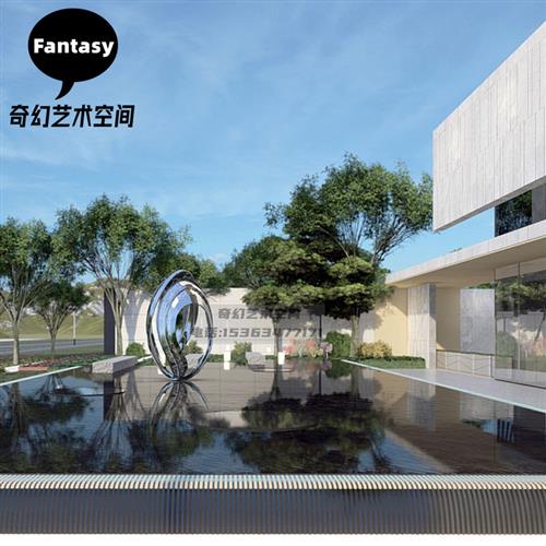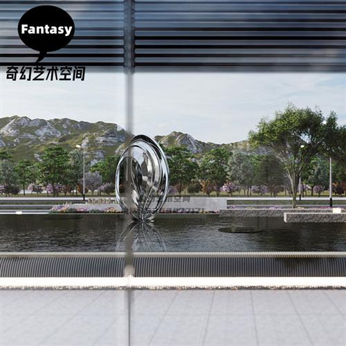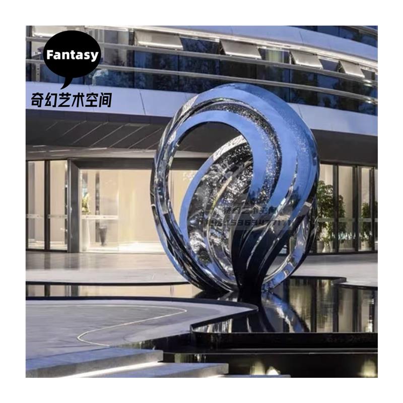 镜面不锈钢圆环雕塑定制发光月亮镂空景观售楼部金属水池装饰摆件