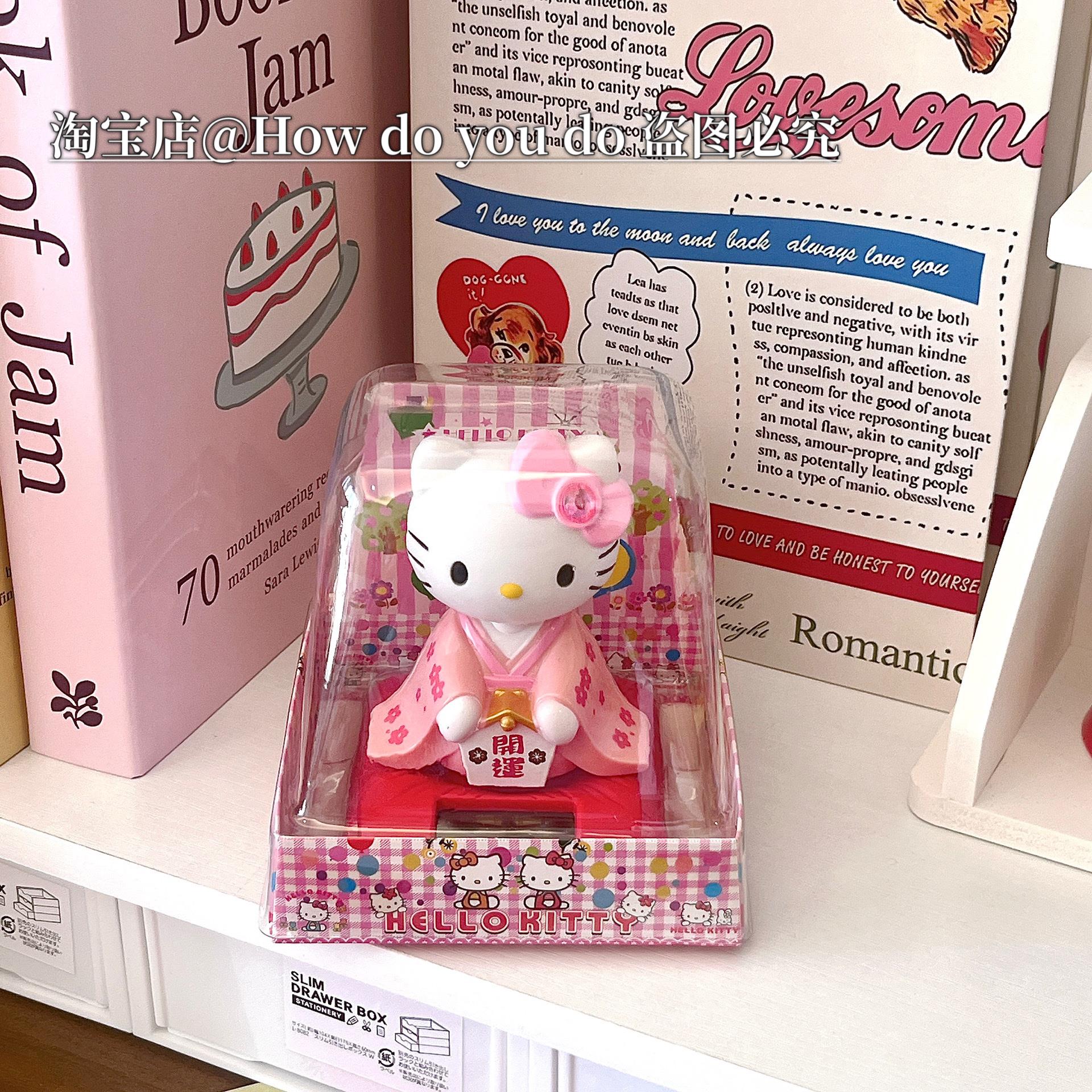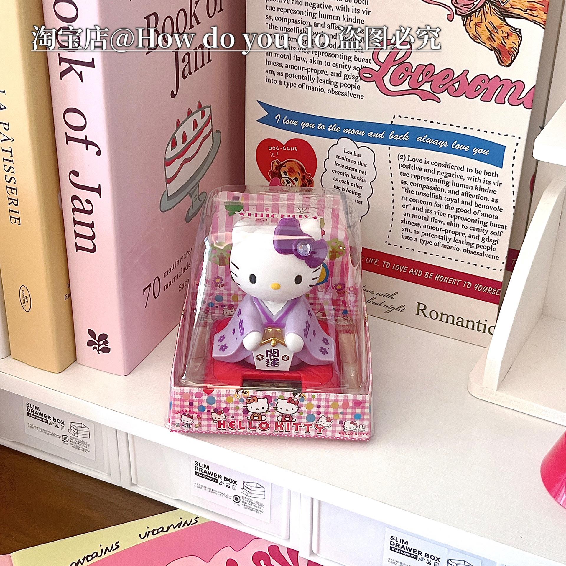 hellokitty猫和服太阳能点头摆件车装饰品礼物创意卡通幸运开运猫