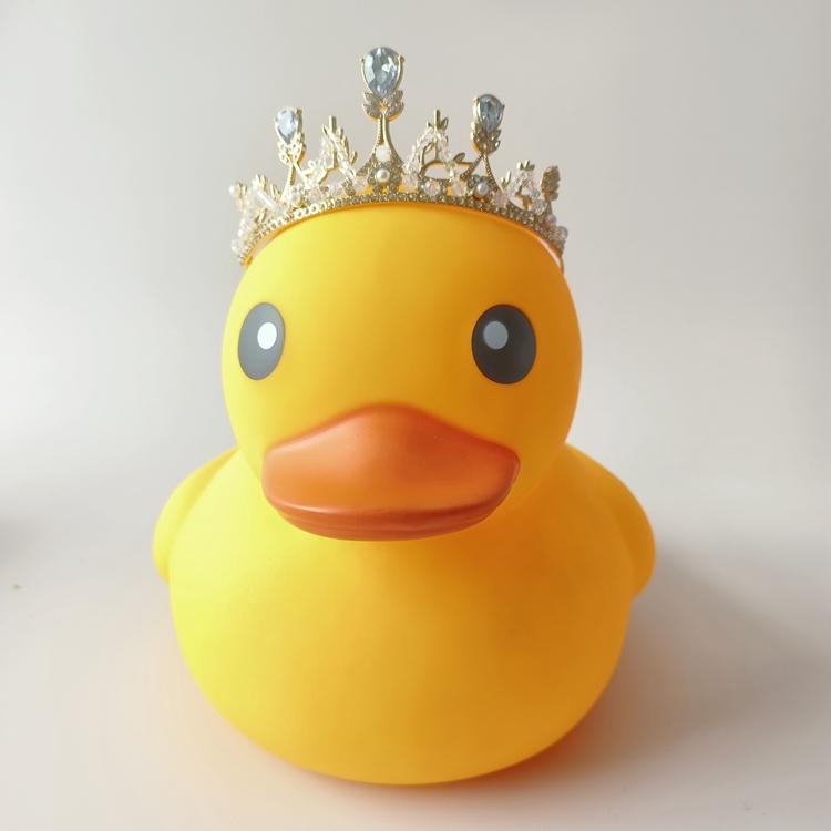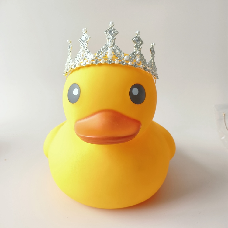 超大号大黄鸭皇冠配件装饰鸭子玩具沙地戏水搪胶桌面摆件