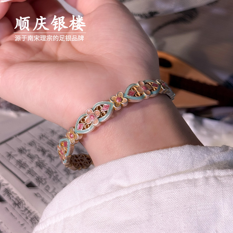 顺庆银楼S9999纯银春和景明手镯足银手饰新中式国潮民族风送礼物