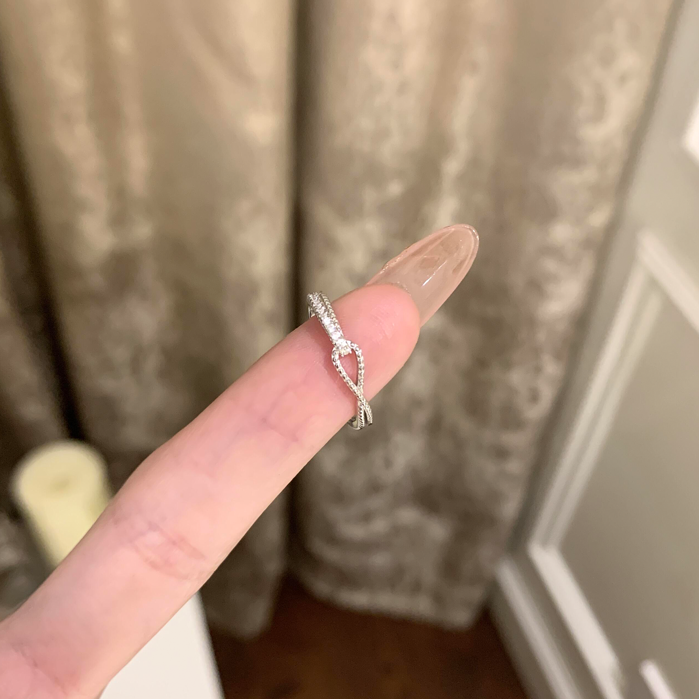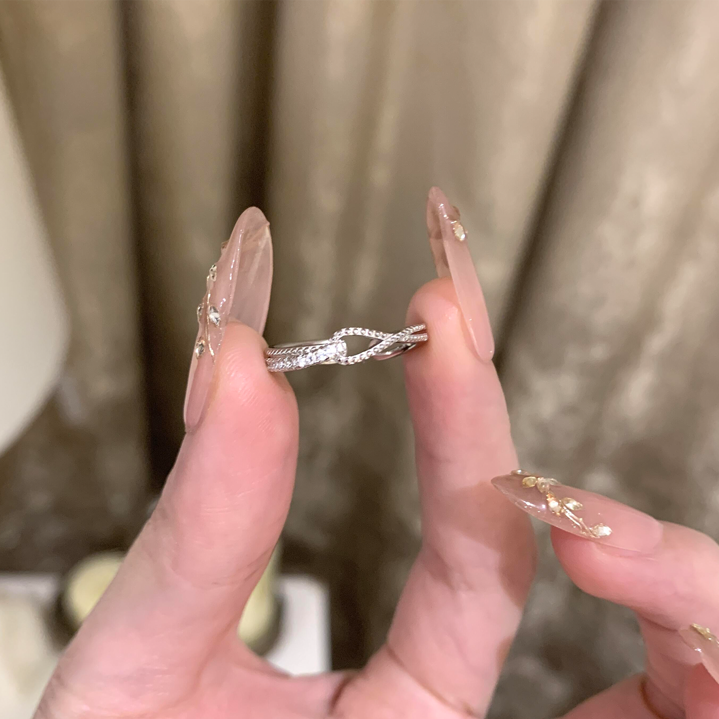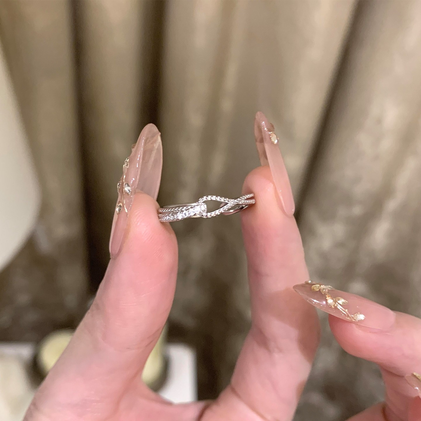 爆闪交叉仿锆石戒指女小众设计感精致简约百搭食指戒2025新款爆款