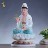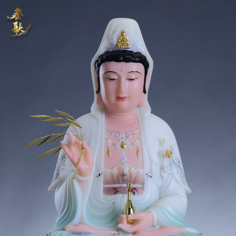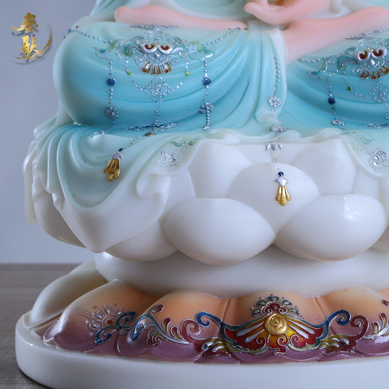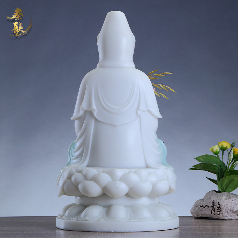 观音菩萨家用坐莲观音佛像客厅佛堂供奉汉白玉观世音菩萨佛像摆件