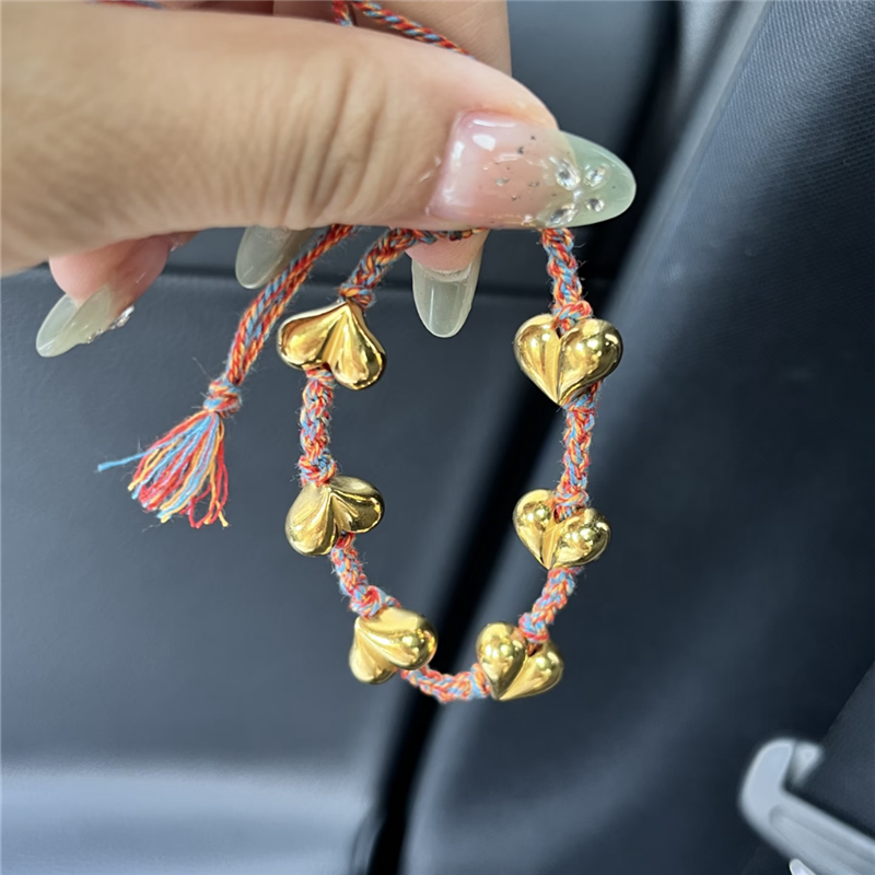 复古纯手工五彩编织绳爱心金珠屁桃手链女甜美减龄少女多巴胺手饰