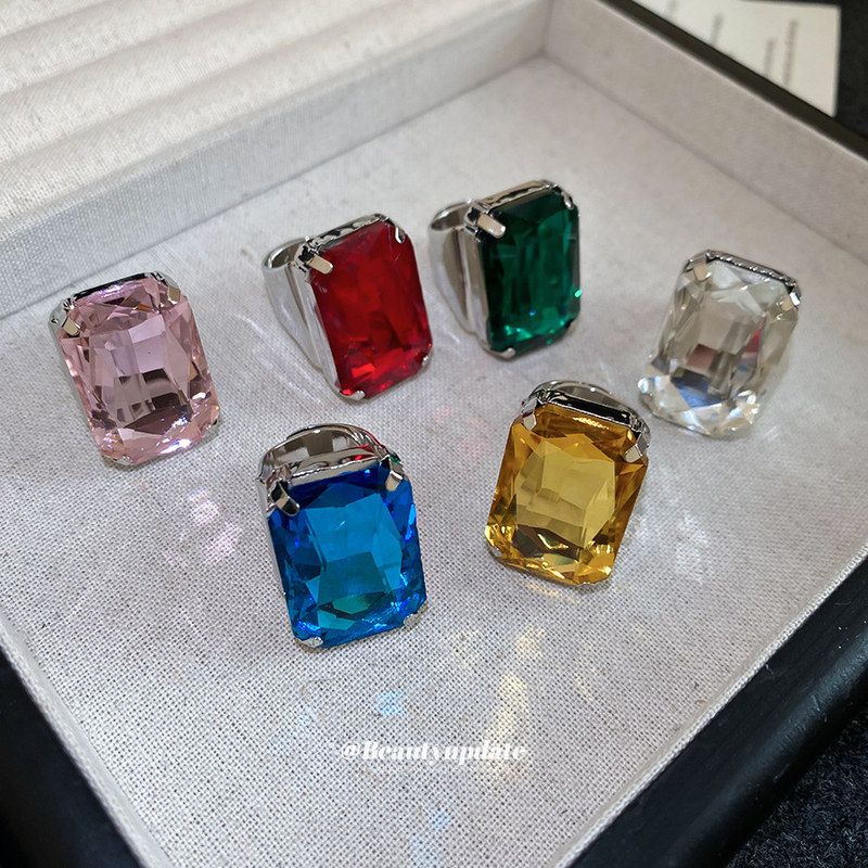 百搭开口指环高级感个性方形戒指戒轻奢欧美食指潮流跨境镶钻夸张