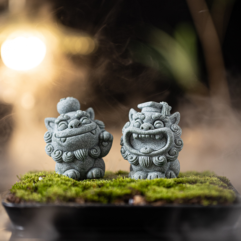 国潮风可爱小狮子博才平安一对茶宠摆件创意客厅桌面装饰品风师爷