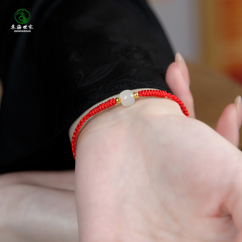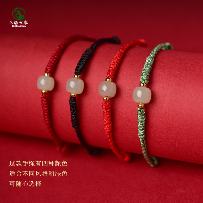 和田玉红绳手链女男东海水晶玛瑙玉髓翡翠玉石手绳本命年龙绳手串