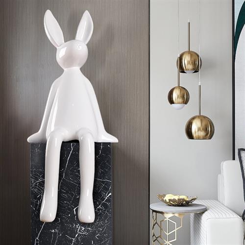 户外网红卡通大白兔玻璃钢摆件家居客厅样板间走廊兔子雕塑装饰品