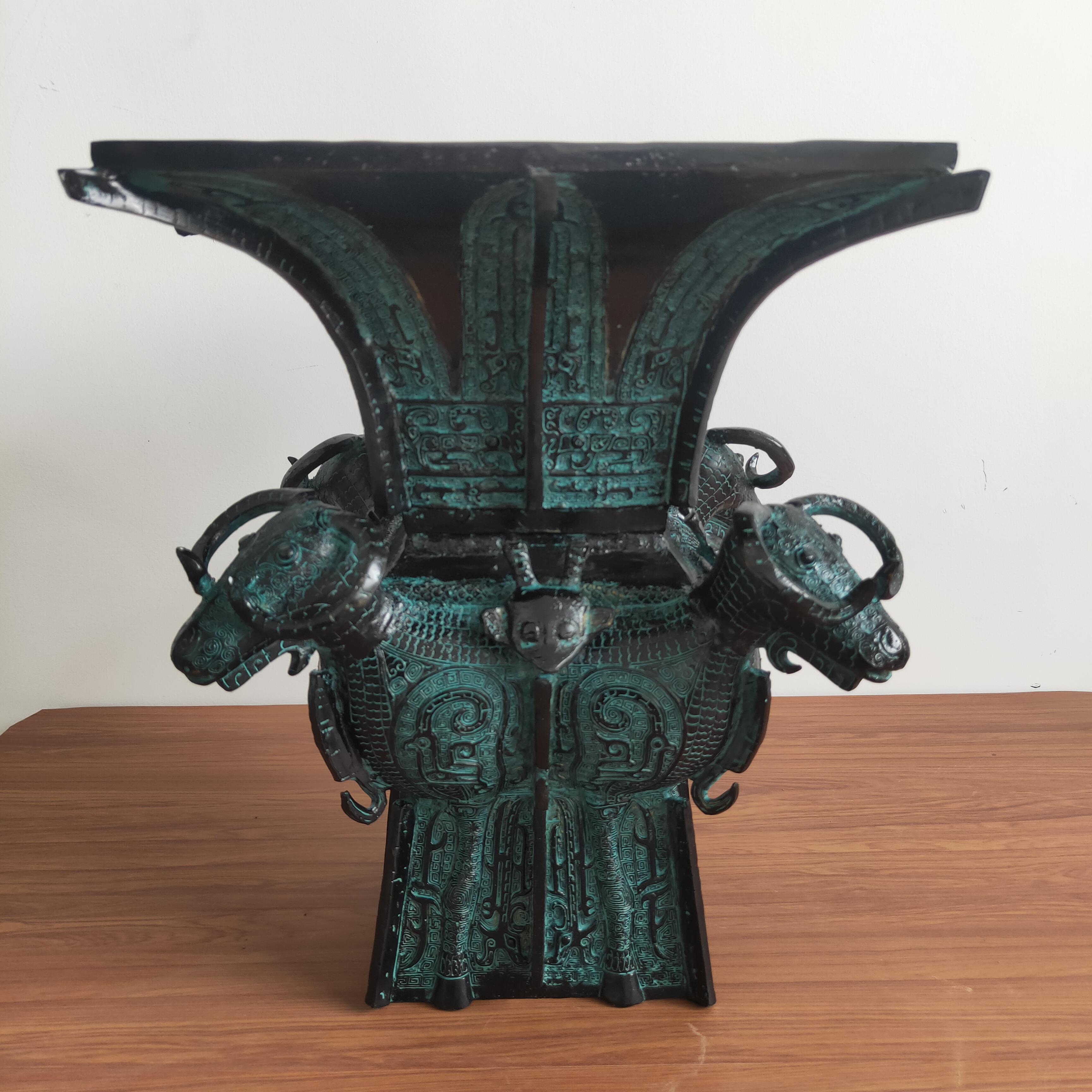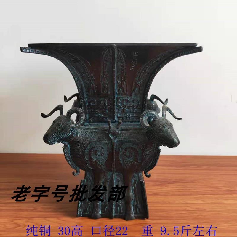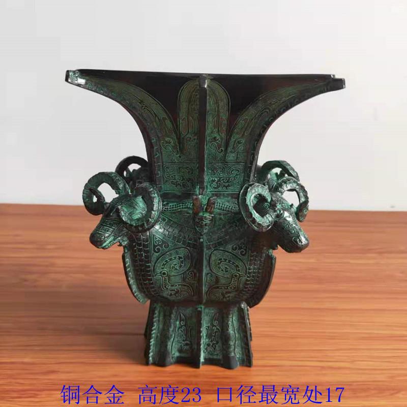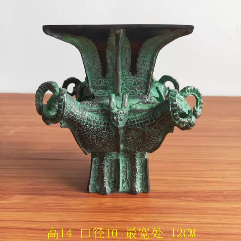 青铜器仿古摆件四羊方尊 办公桌摆件笔筒 家居装饰品 教学模型