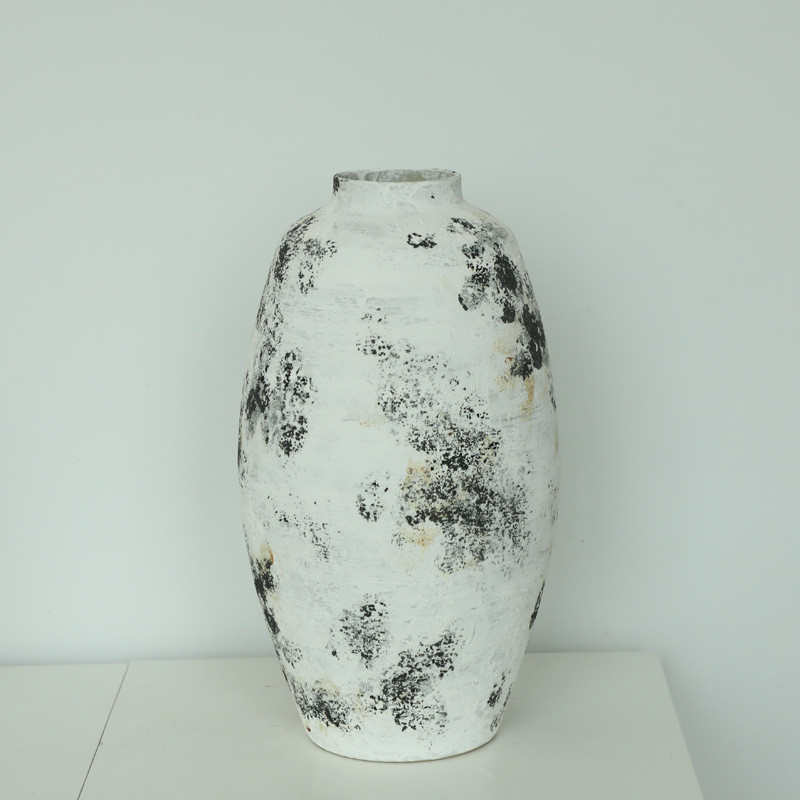 简约侘软风黑白陶瓷花瓶家居复古陶艺摆件样板间寂装做旧干花花器