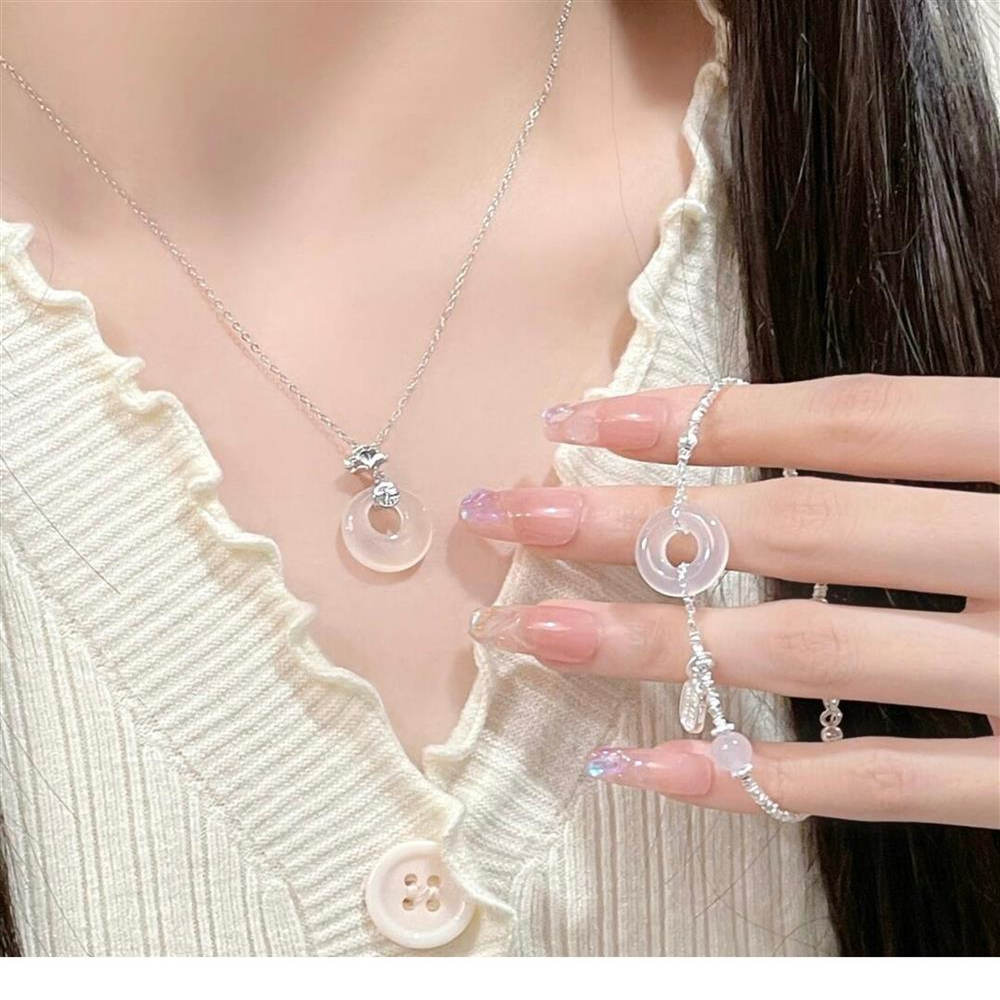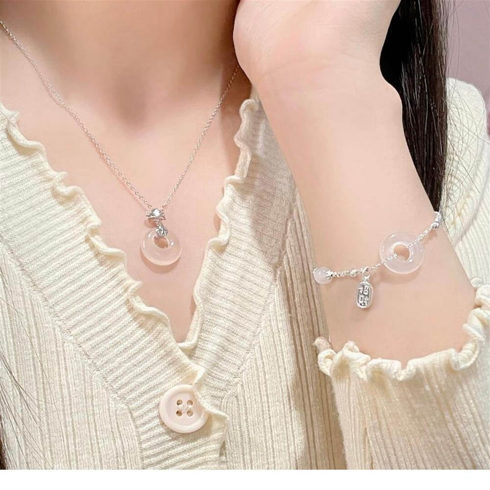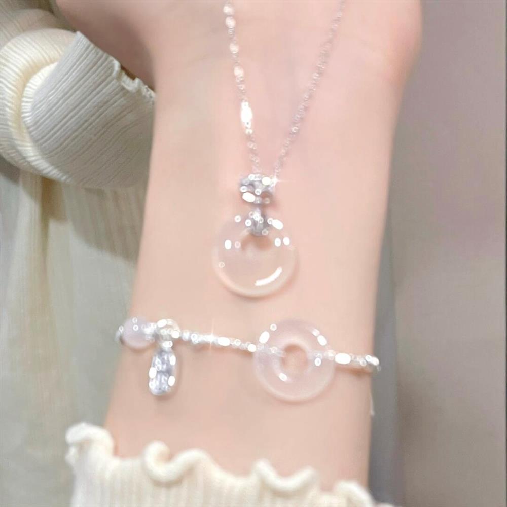 「玉髓平安扣」纯银s999项链女轻小众锁骨链吊坠送任务和田玉项链