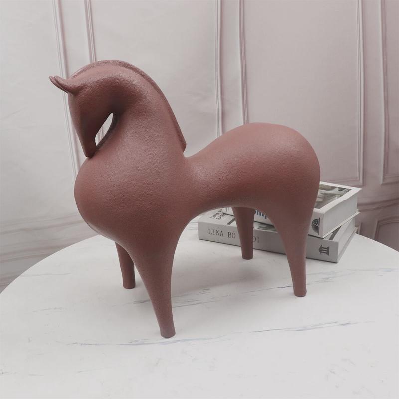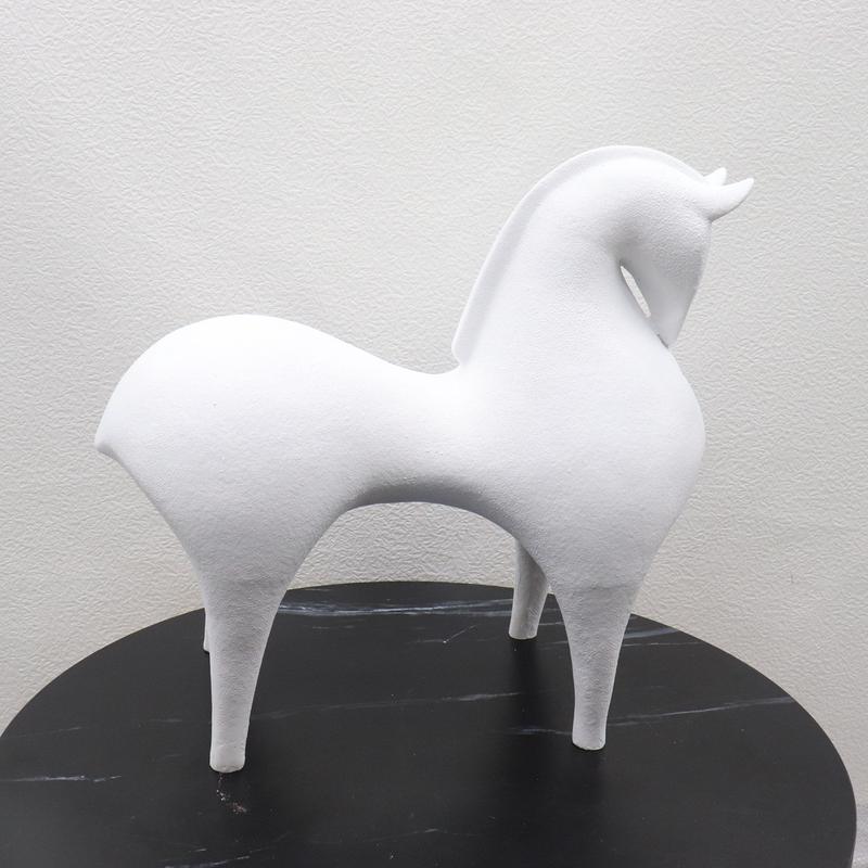 现代新中式唐马摆件红白色米兰客厅样板间办公室树脂时尚软装饰品