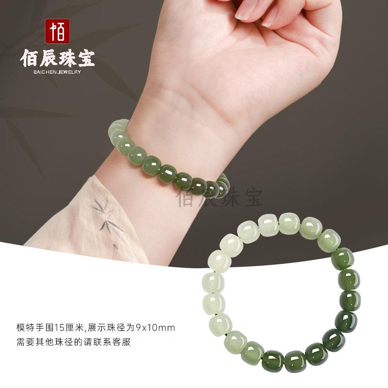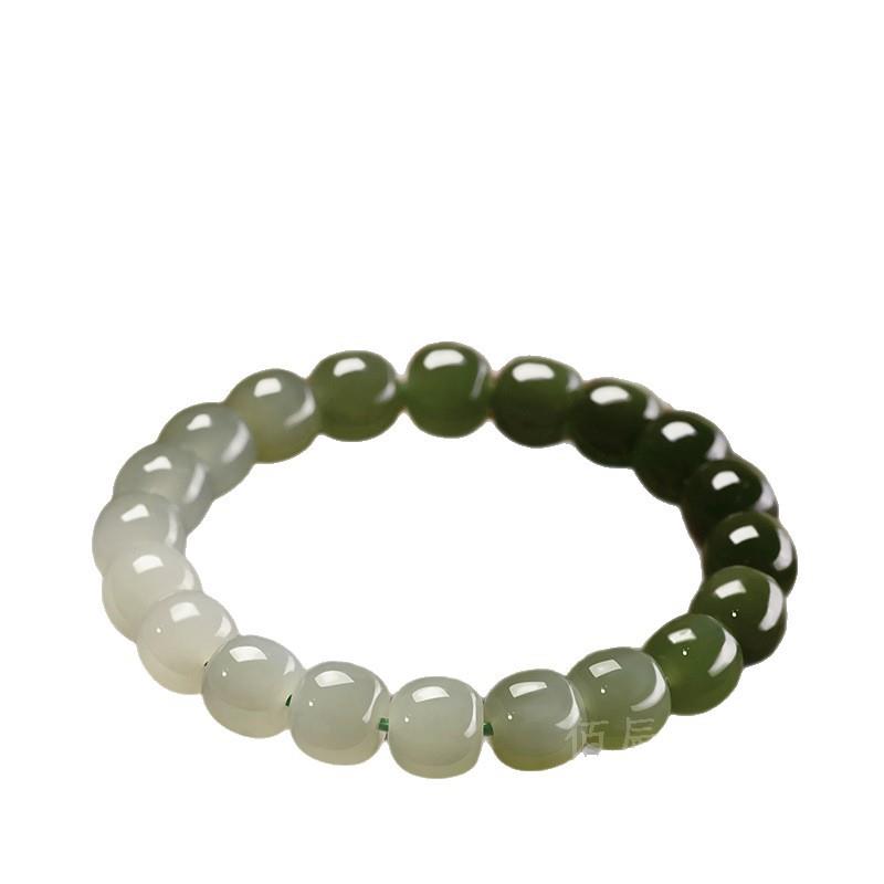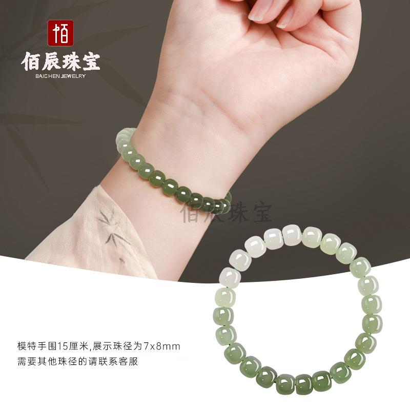 2026天然和田玉渐变老型珠桶珠手串女款晴水青白玉手链男轻奢精致