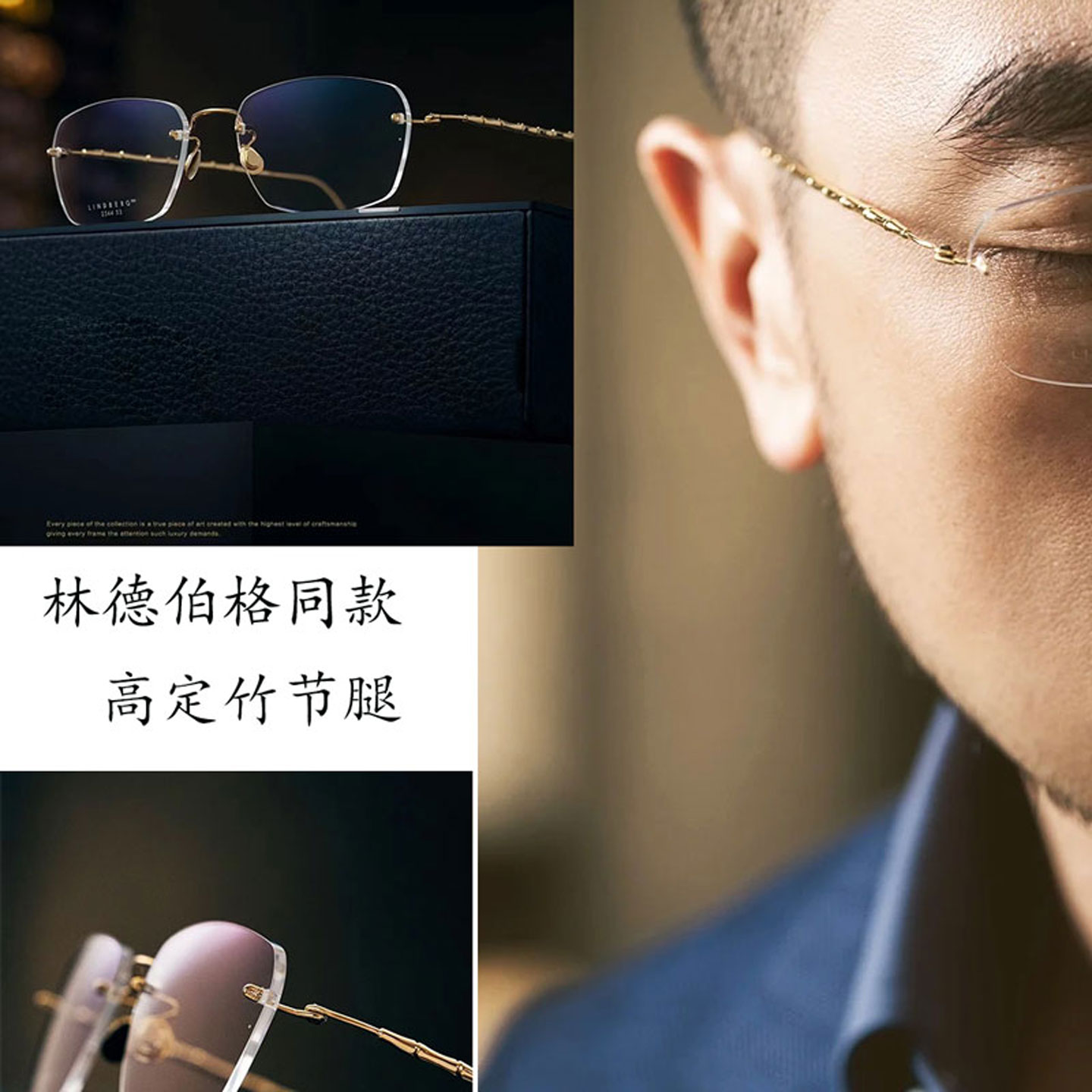 林德系列同款2544竹节腿超轻纯钛无框眼镜高级感可配度数定制片形