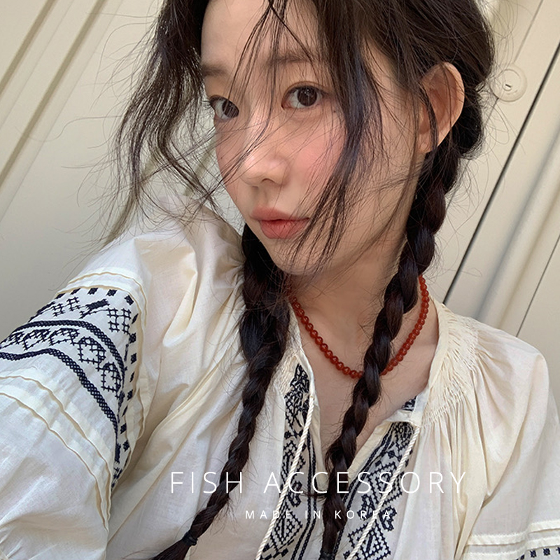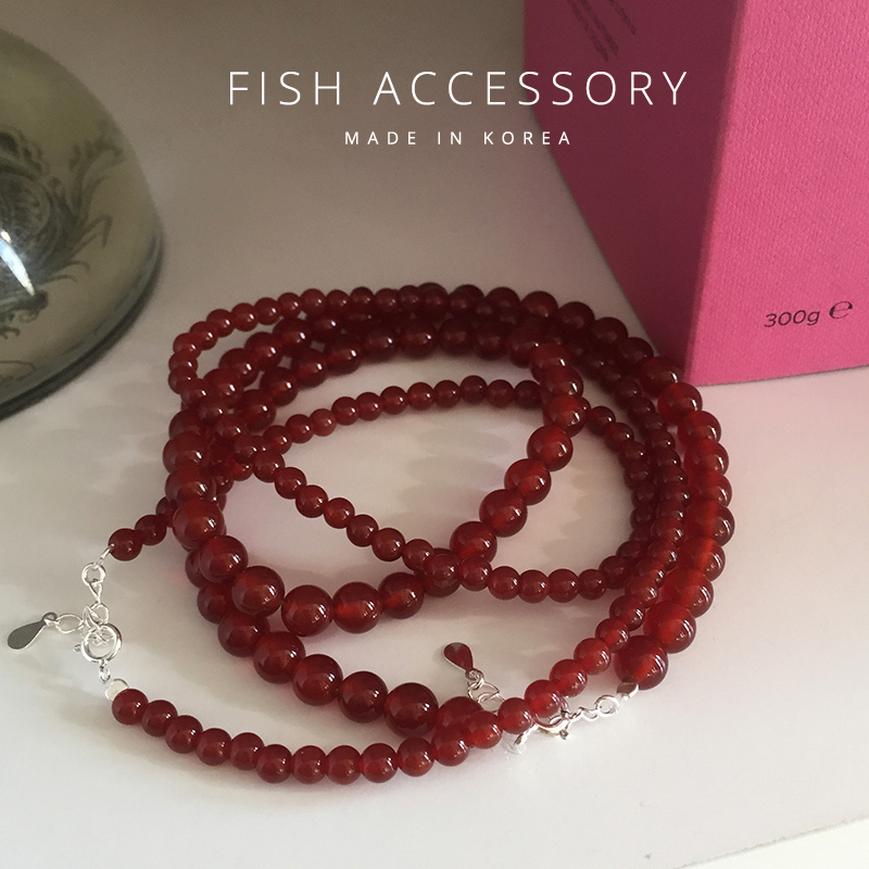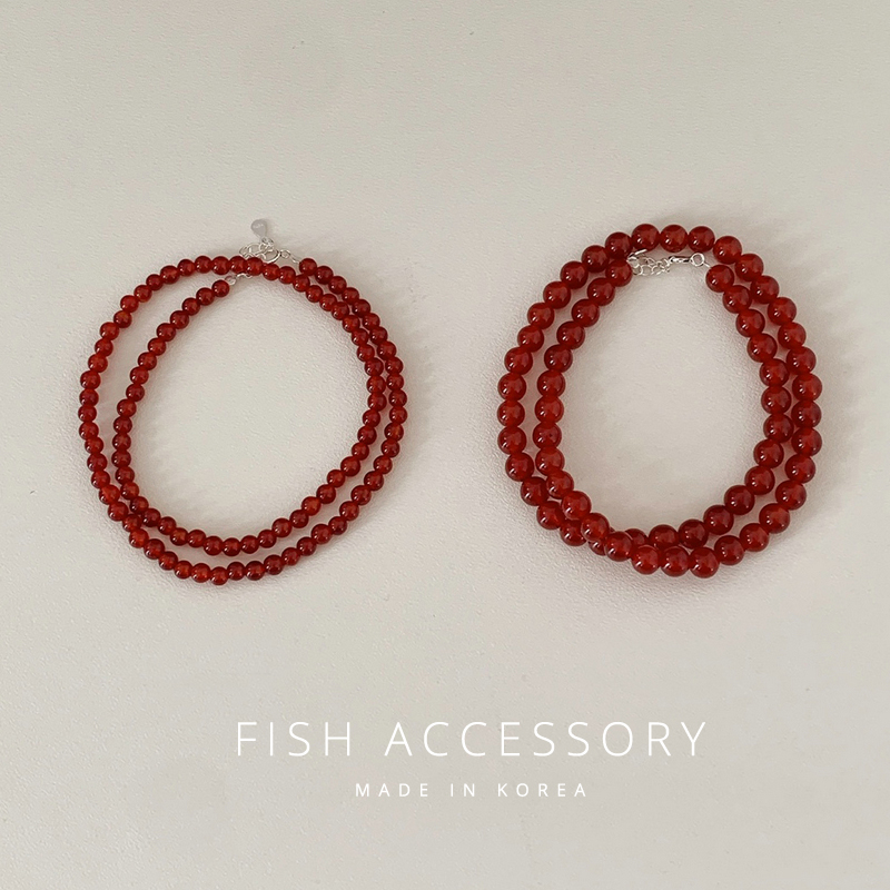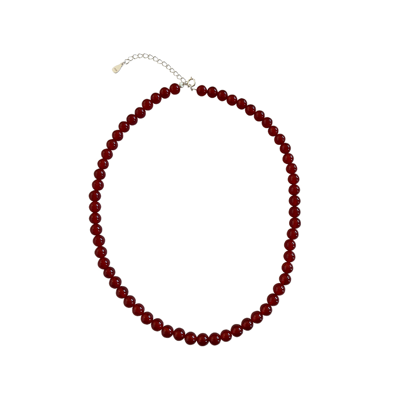 韩国进口ins博主同款显白红玛瑙锁骨链925银扣串珠石榴红色短项链