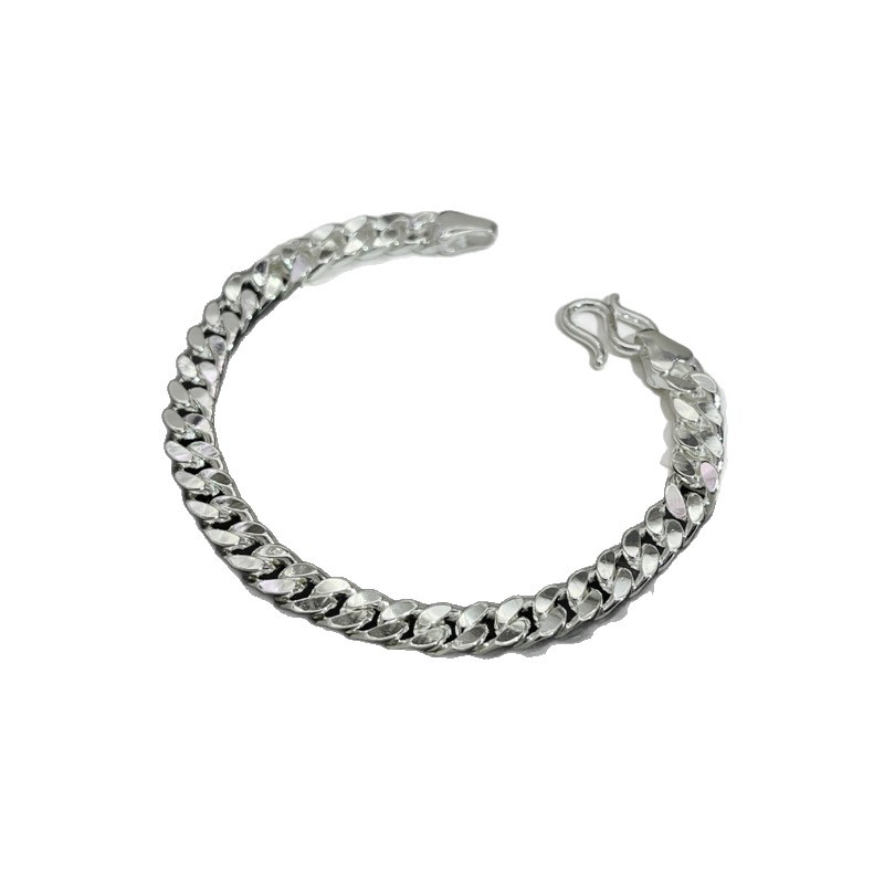 s925纯银男士单扁手链个性时尚嘻哈霸气粗款男款古巴年轻百搭手饰