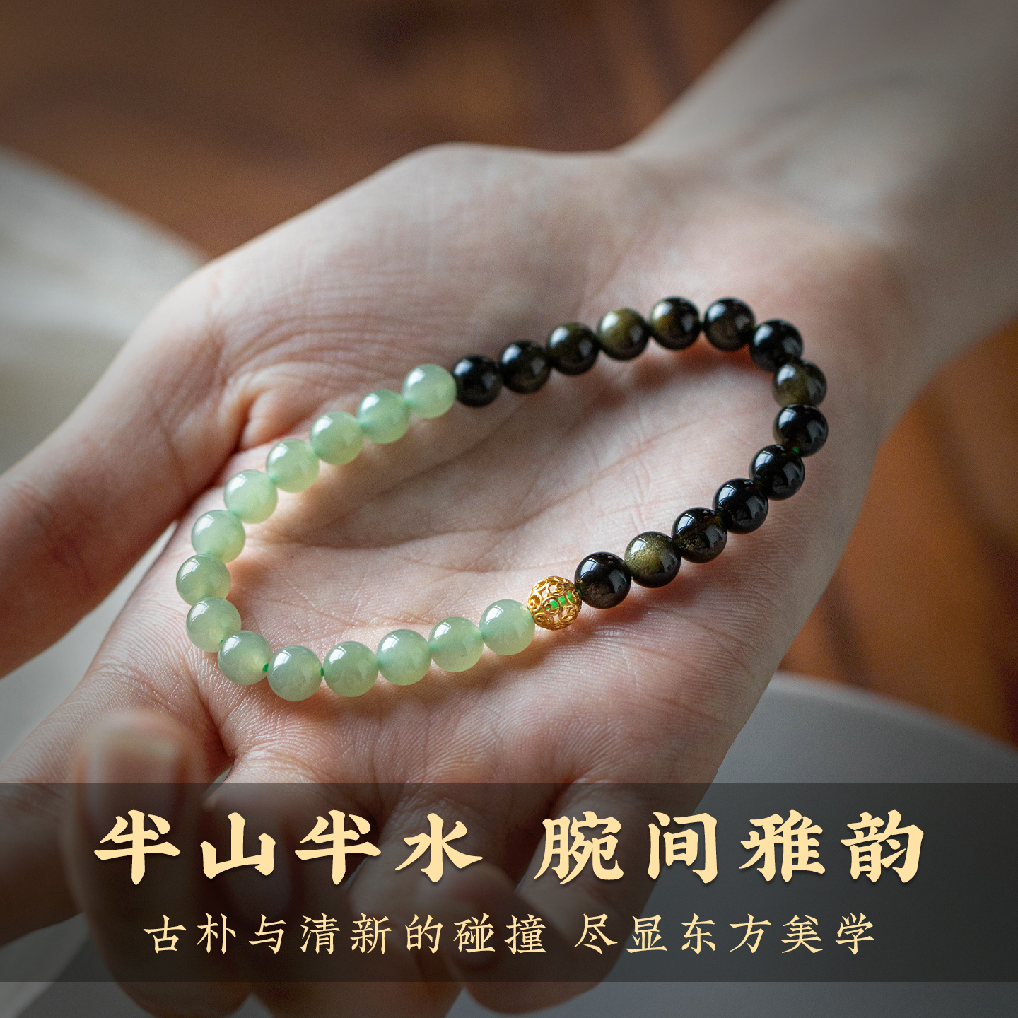 一兴保真和田玉925银祥云楼空珠手链小众轻奢高级感手饰节日礼物