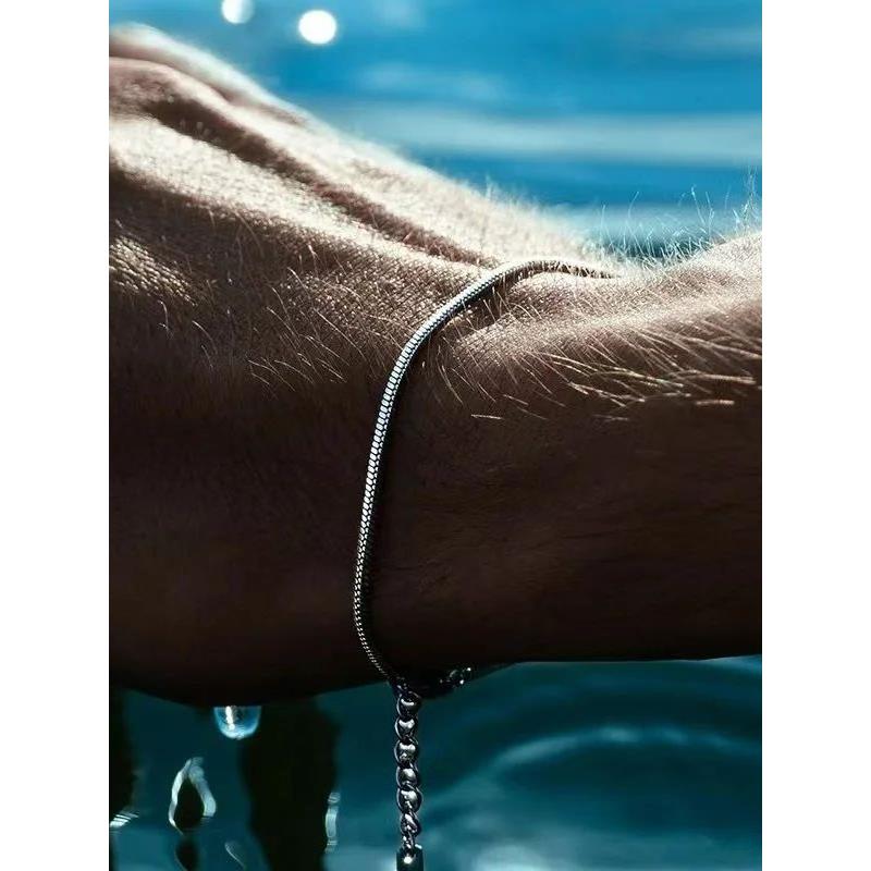 Simple MEN Stainless Steel Square Snake Bone Chain Bracelet