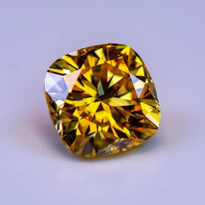 100%莫桑钻裸石肥正方金黄色moissanite 项链吊坠戒指耳钉DIY配石