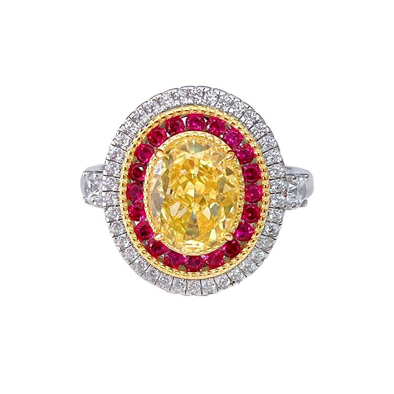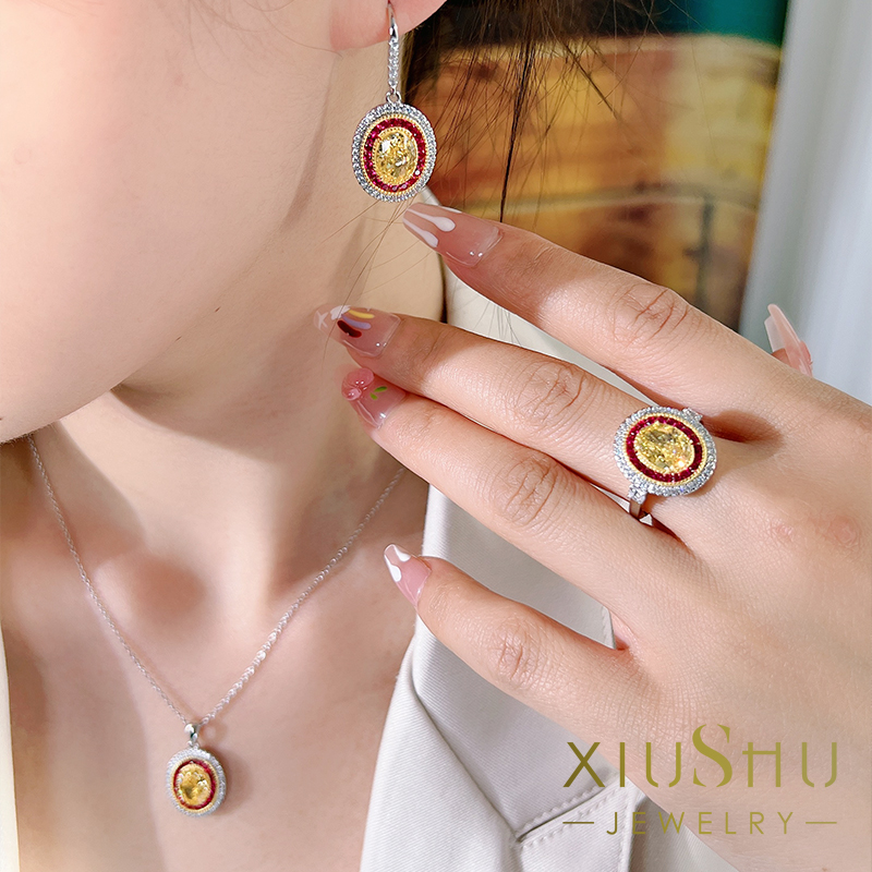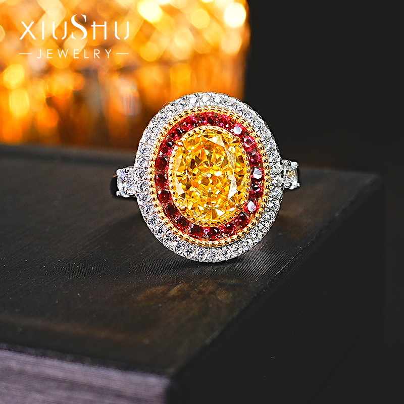 时尚轻奢椭圆黄钻925银戒指镶嵌高碳钻百搭气质小众设计高级感女
