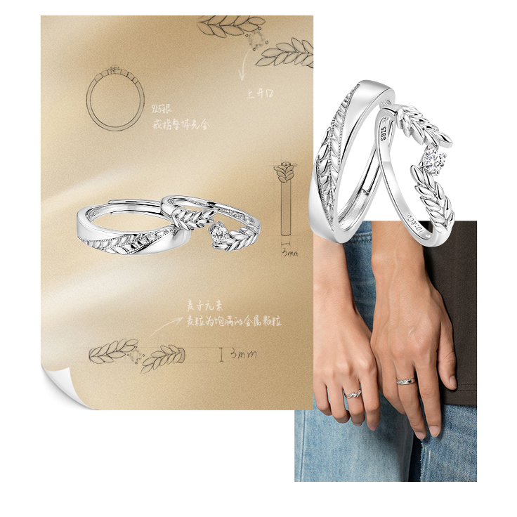 I Do&Co.穗穗年年S999纯银情侣对戒麦穗开口戒指生日礼物送男女友