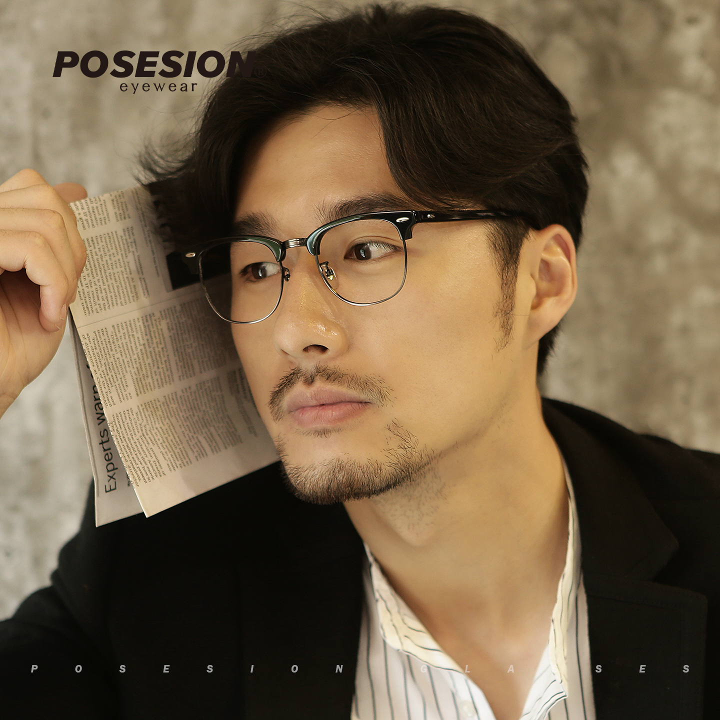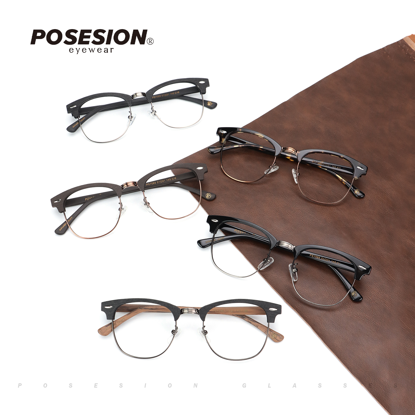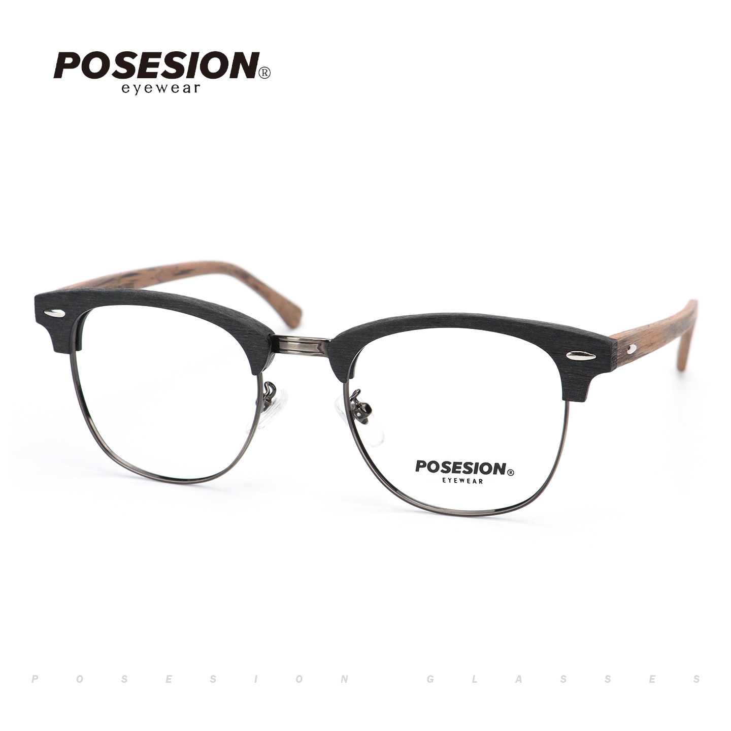 POSESION复古木纹板材半框眼镜架 大框眼镜框 近视大脸眼睛框男女