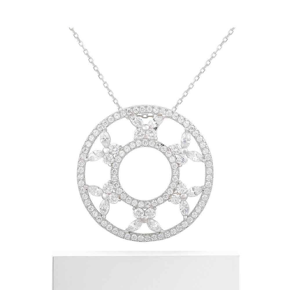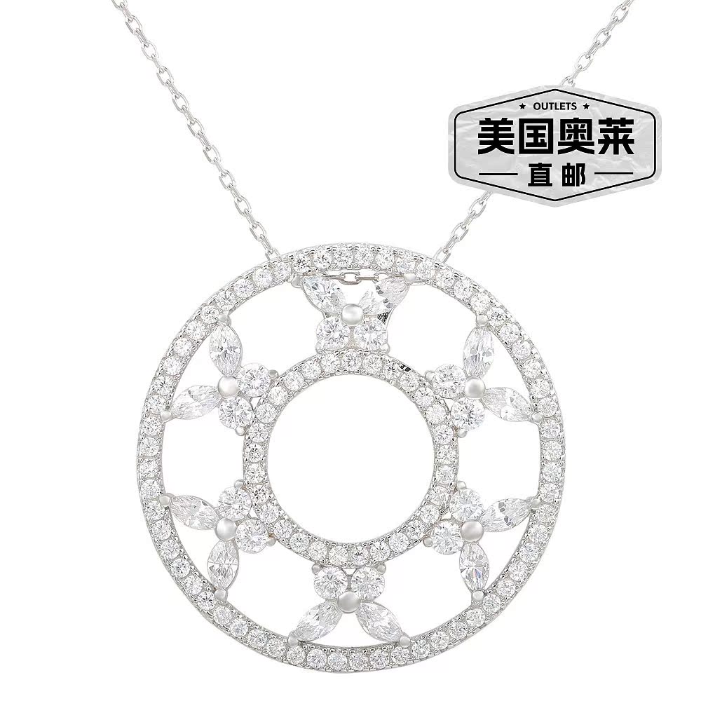 自营 Suzy Levian 纯银圆形蝴蝶方晶锆石项链 - 白色 美国奥莱直