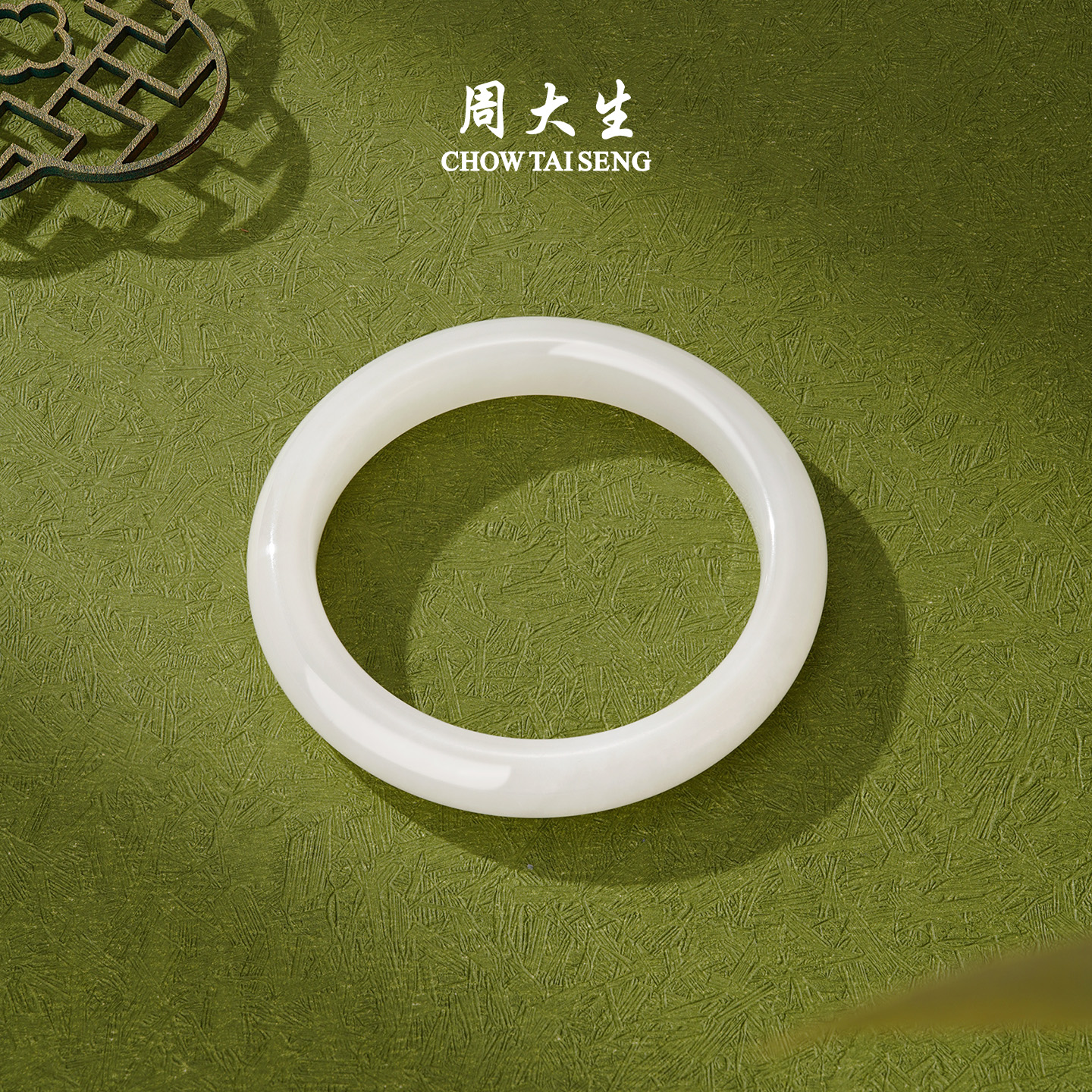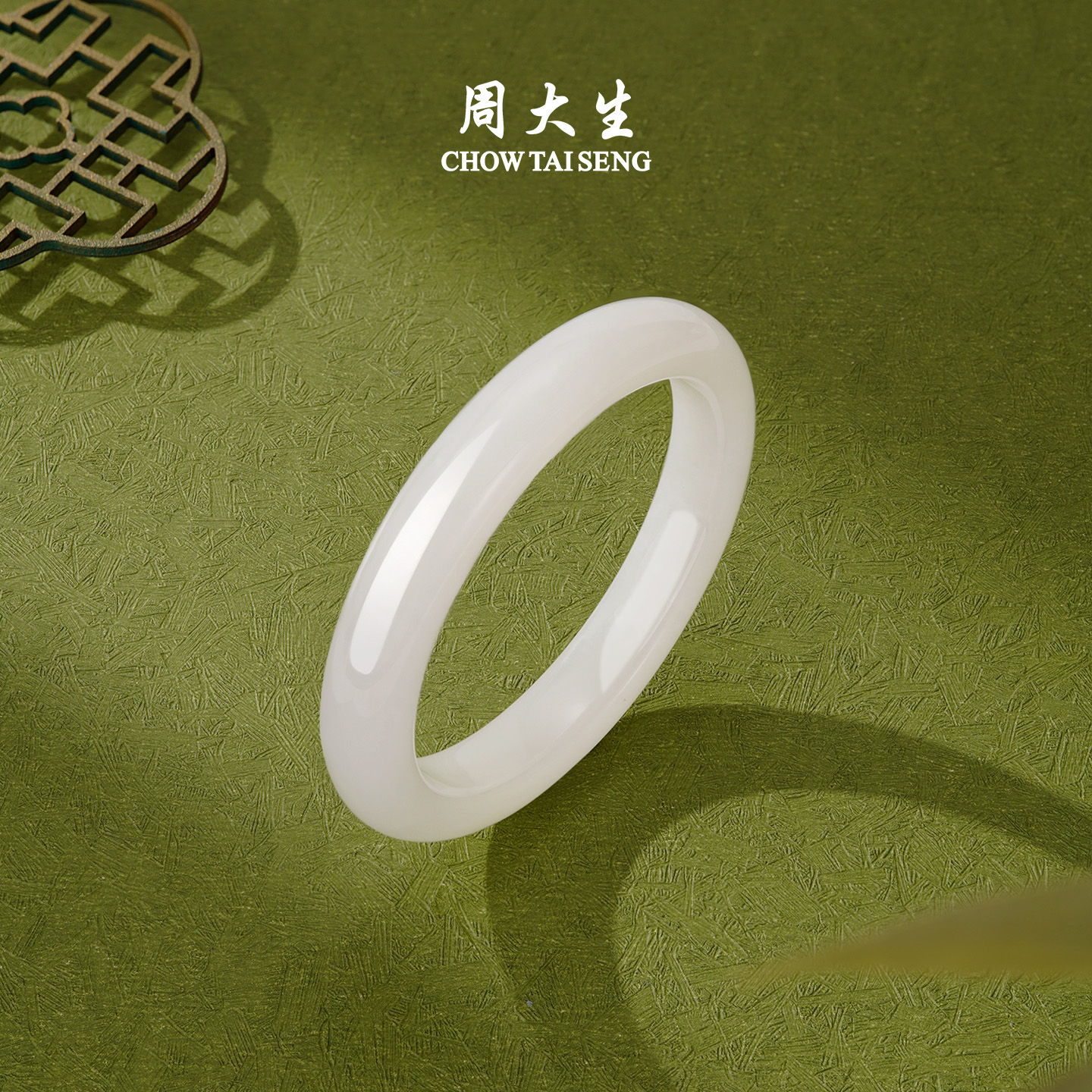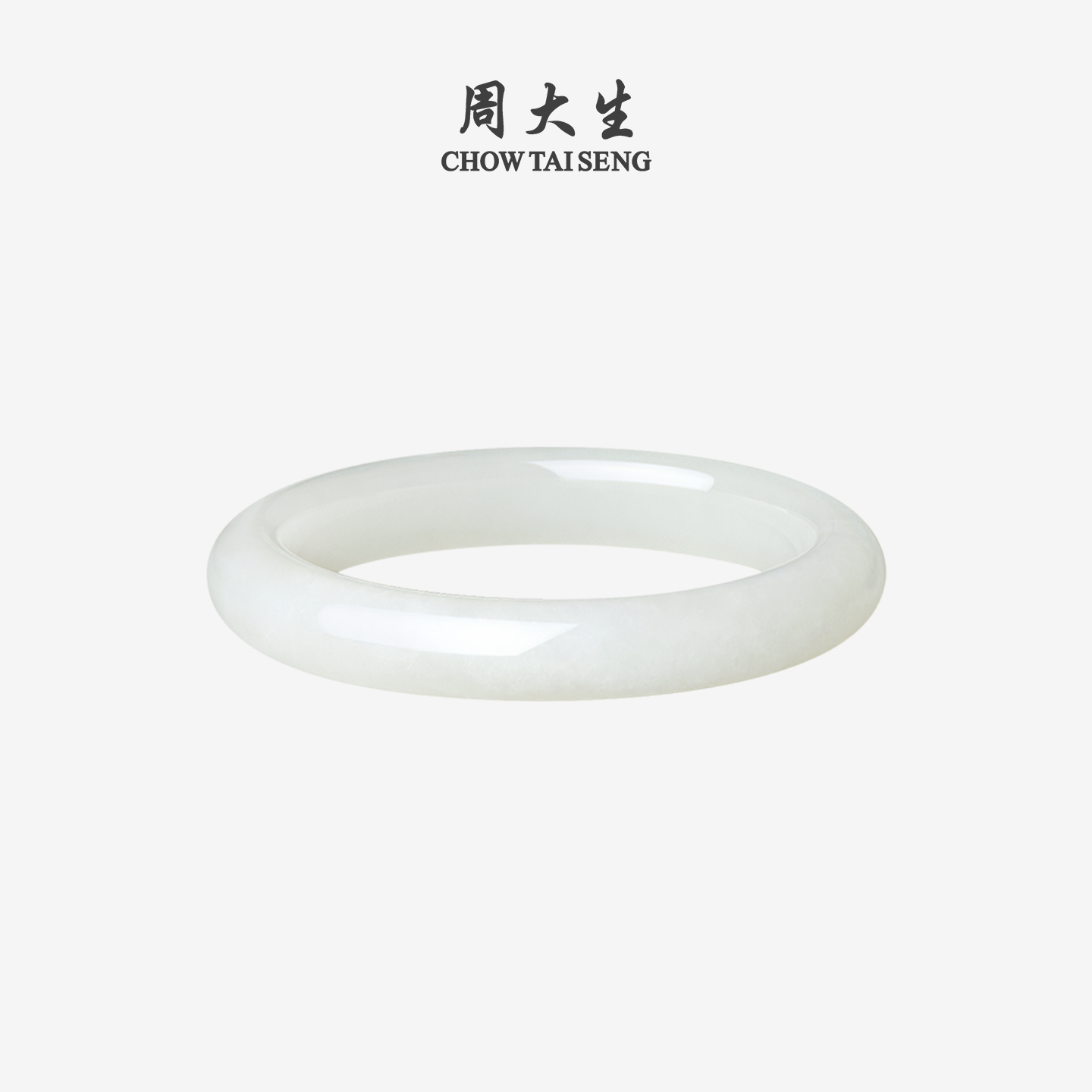 周大生天然和田白玉手镯女玉镯子皎月平安镯送女友生日礼物送妈妈