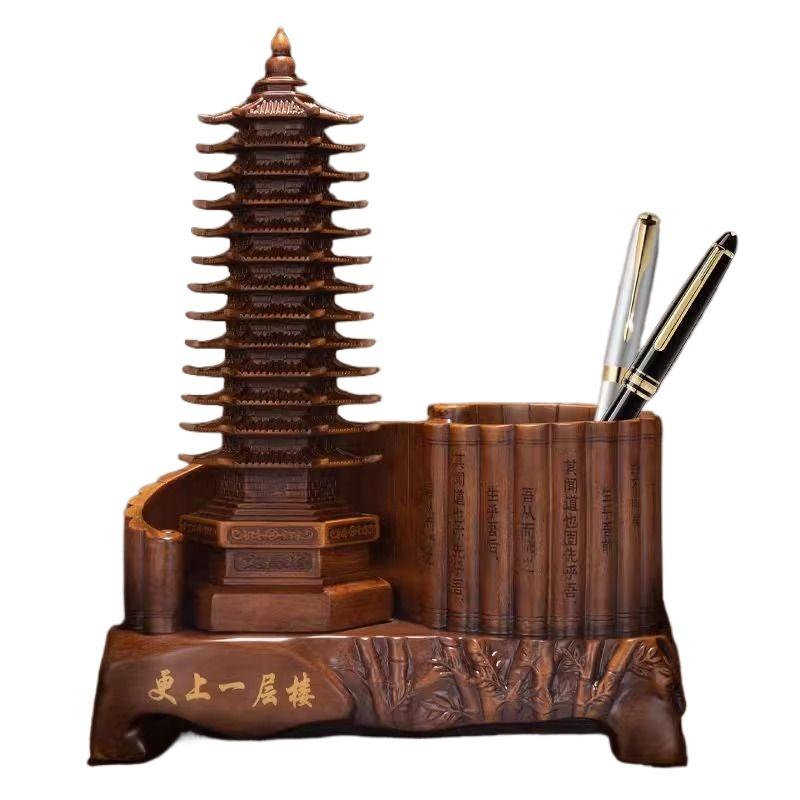 十三层13文昌塔笔筒摆件九层工艺品木纹送孩子礼物学生开学书桌面
