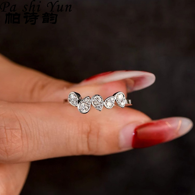 帕诗韵法式轻奢甜美风S925纯银镶嵌水滴排钻戒指海蓝色爆闪情侣款