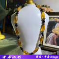 桶珠虎眼石黑玛瑙竹节串珠女士项链时髦锁骨链高级感美拉德色