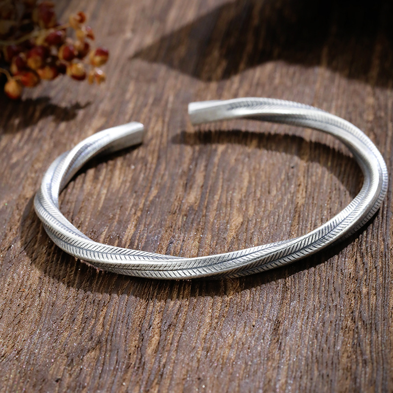 莫比乌斯银扭纹镯子小众幸运蛇纹手环新款礼物手镯泰9999足纯银