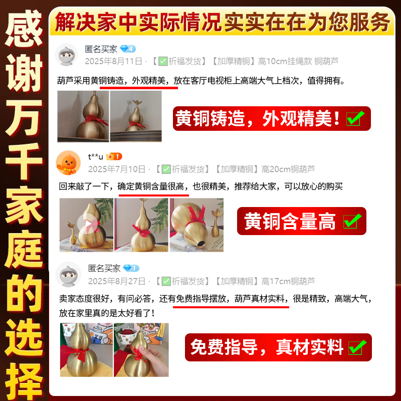 铜葫芦摆件纯黄铜开口开盖空心朱砂葫芦五帝钱挂件门对门客厅家用