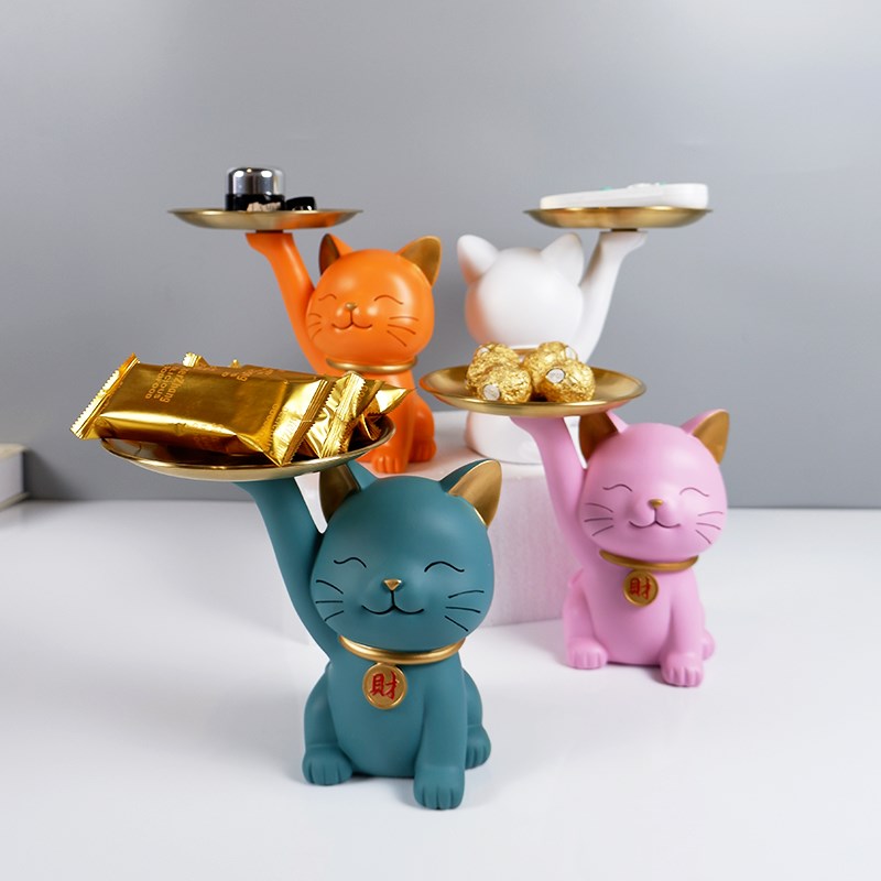 客厅玄关招财猫收纳摆件钥匙摆放台桌面酒柜办公室装饰品乔迁礼物