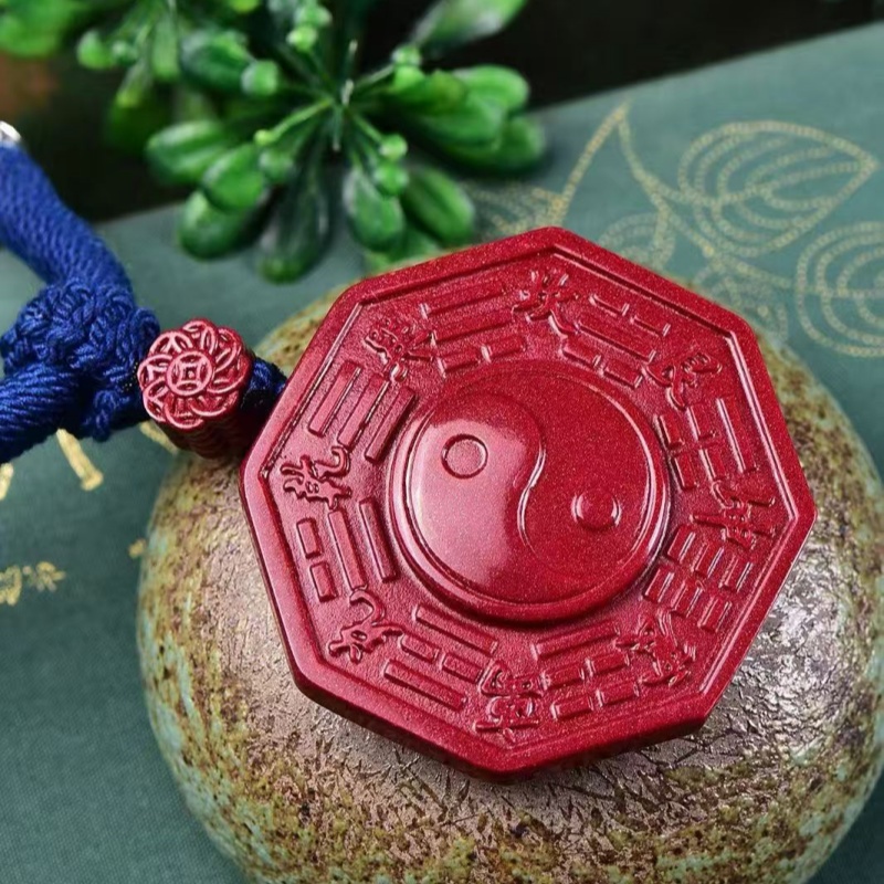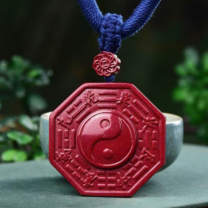 高含量朱砂太极五行八卦牌五路财神吊坠阴阳鱼男女紫金砂挂件饰品