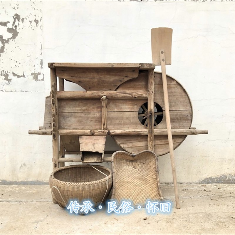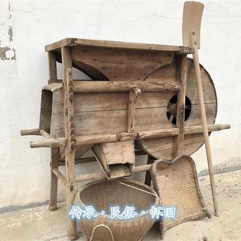 民俗怀旧老物件古代旧农具农耕文B化老风车播种机农耕博物馆展览