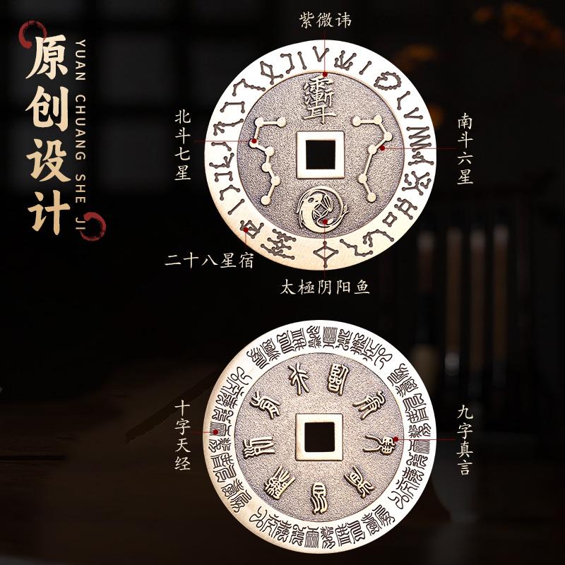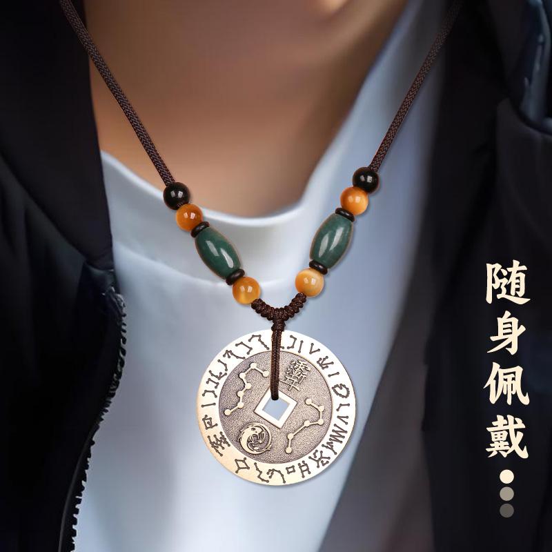 道家紫薇讳铜钱吊坠临兵斗者皆阵列前行九字真言项链平安护男身符
