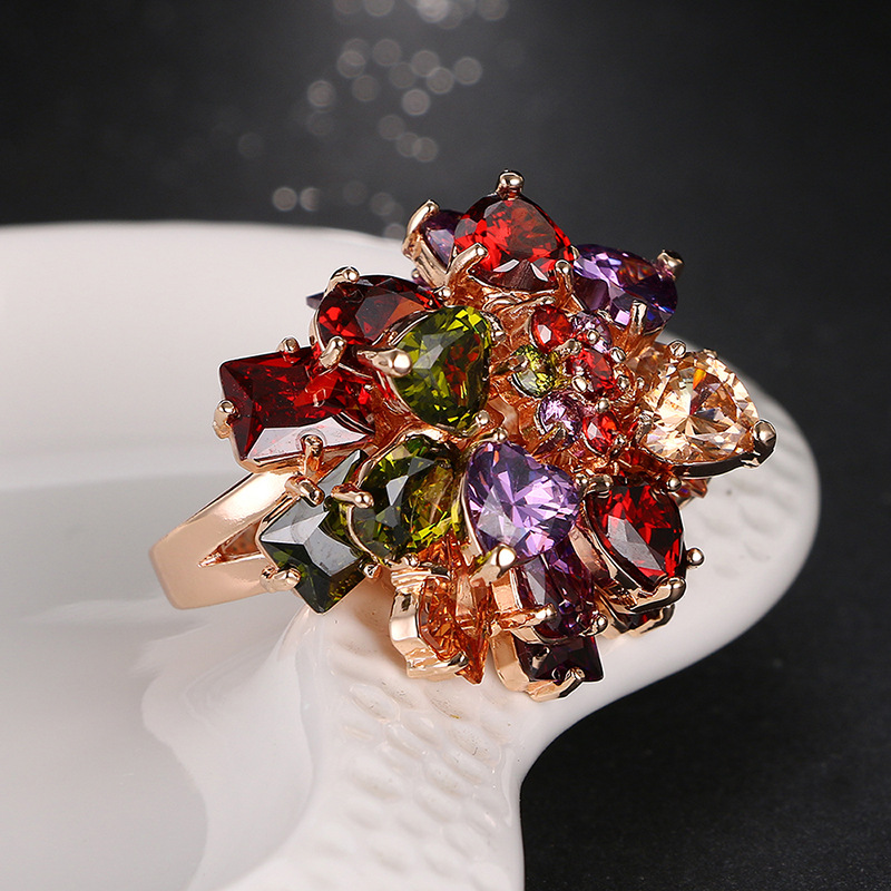 蒙娜丽莎戒指奢华七彩色锆石食指气质ins风时尚精品水晶夸张指环