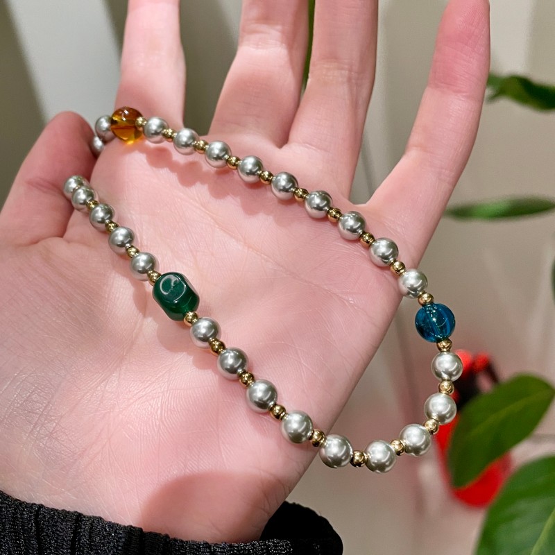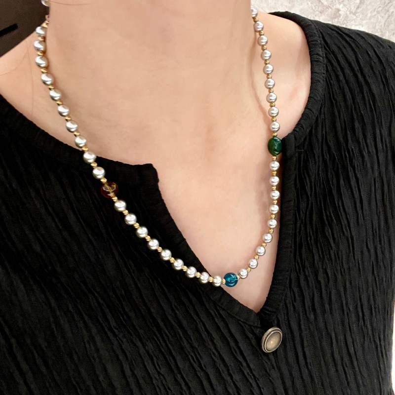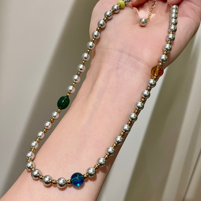 多巴胺银灰色珍珠项链配饰女秋冬毛衣链轻奢高级感锁骨链串珠颈链