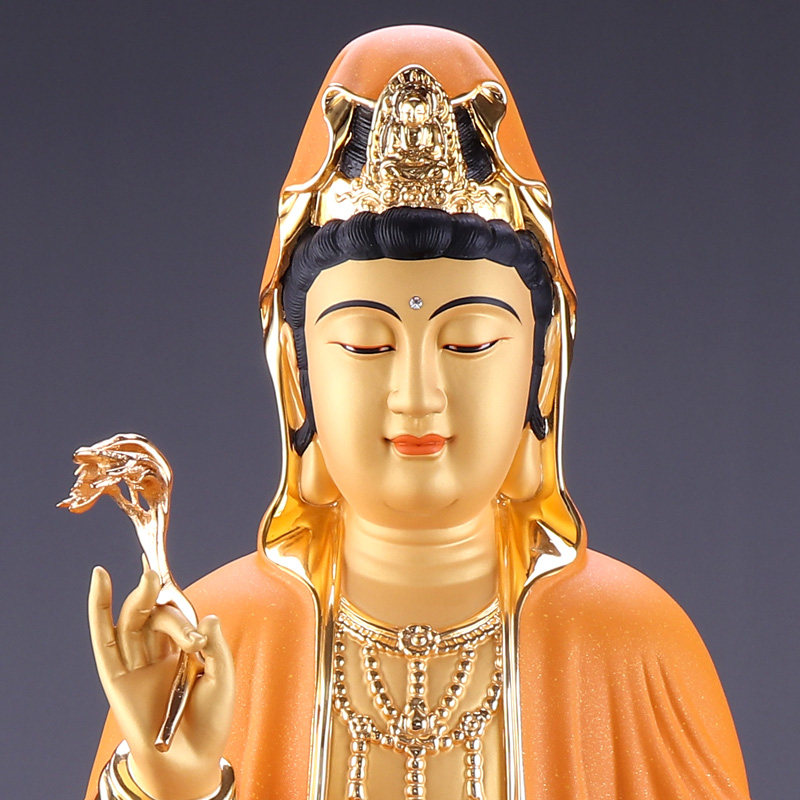 圆通佛具台湾铜雕观音佛像黄铜鎏金观音菩萨家用坐莲 观世音摆件
