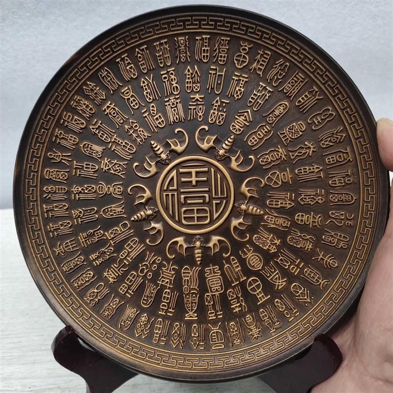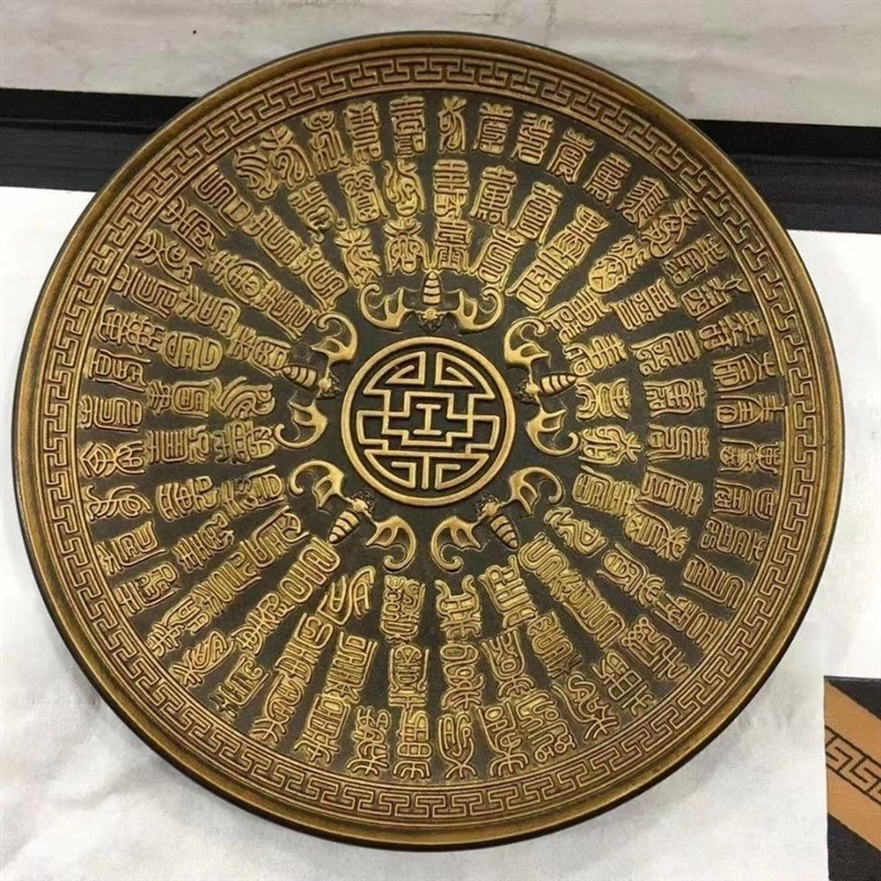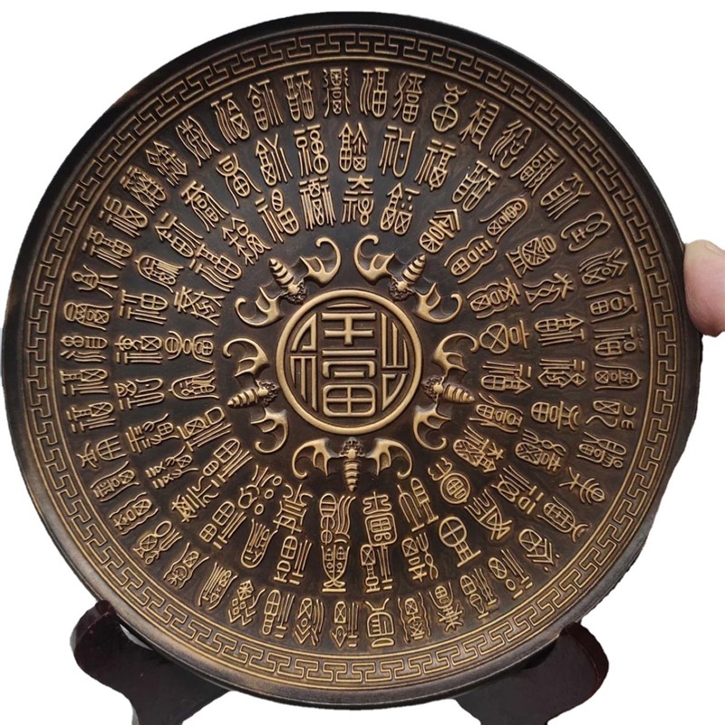 仿古铜器收藏纯i铜百福大盘子 碟子观赏盘家居装饰品摆件 铜盘