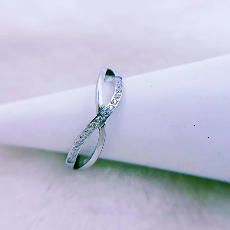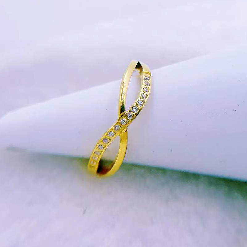 交叉戒指女时尚个性小众设计交错排钻钛钢镀18k玫瑰金8字食指指环