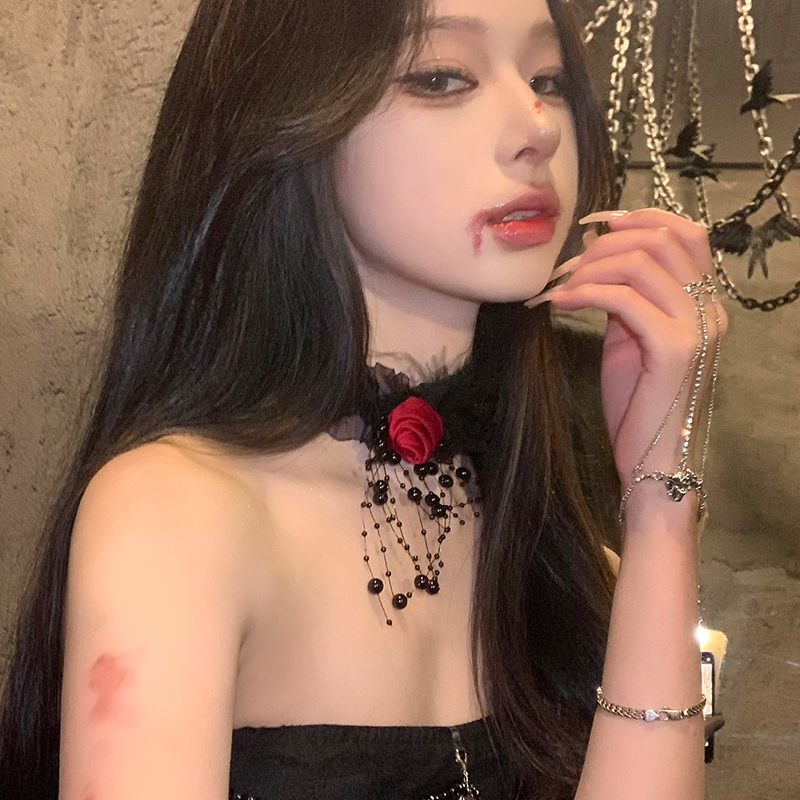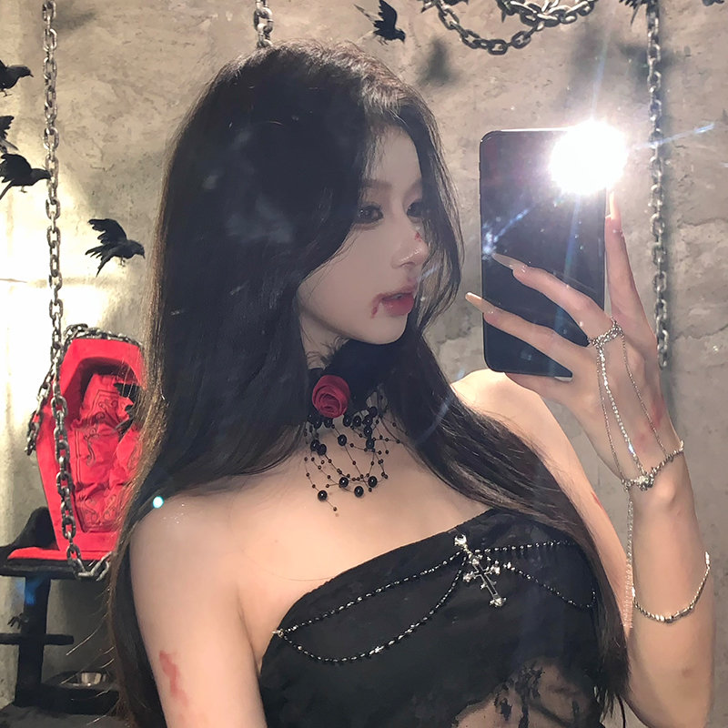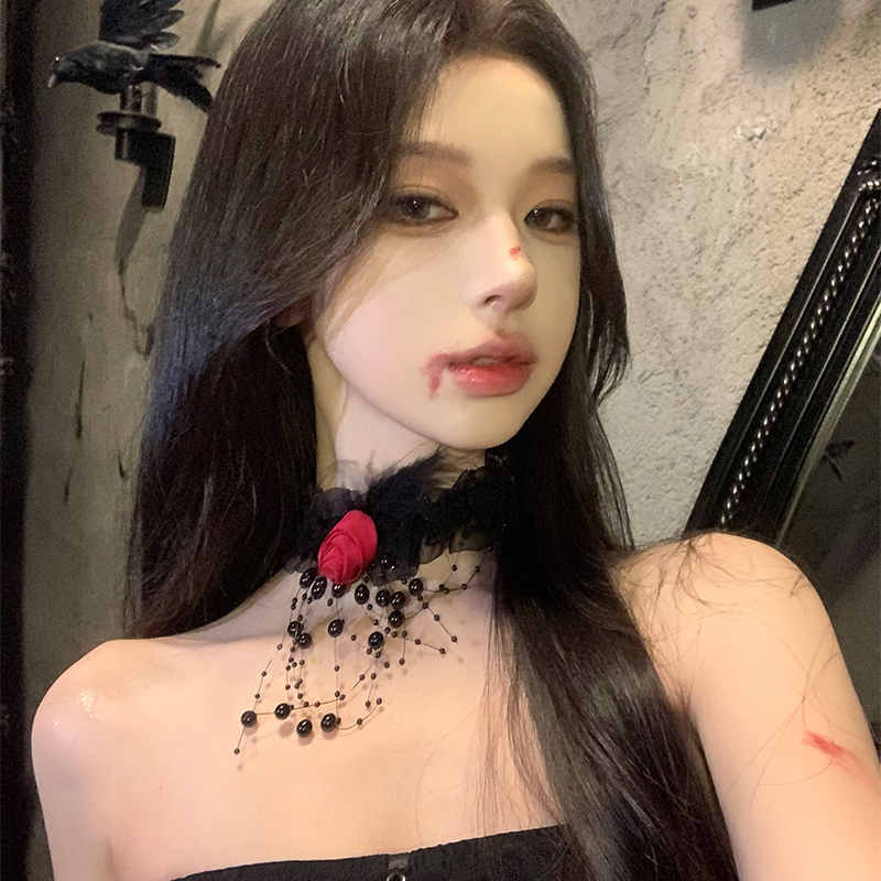 哥特风装扮暗黑系羽毛玫瑰chocker颈链万圣节cos拍照道具配饰项链