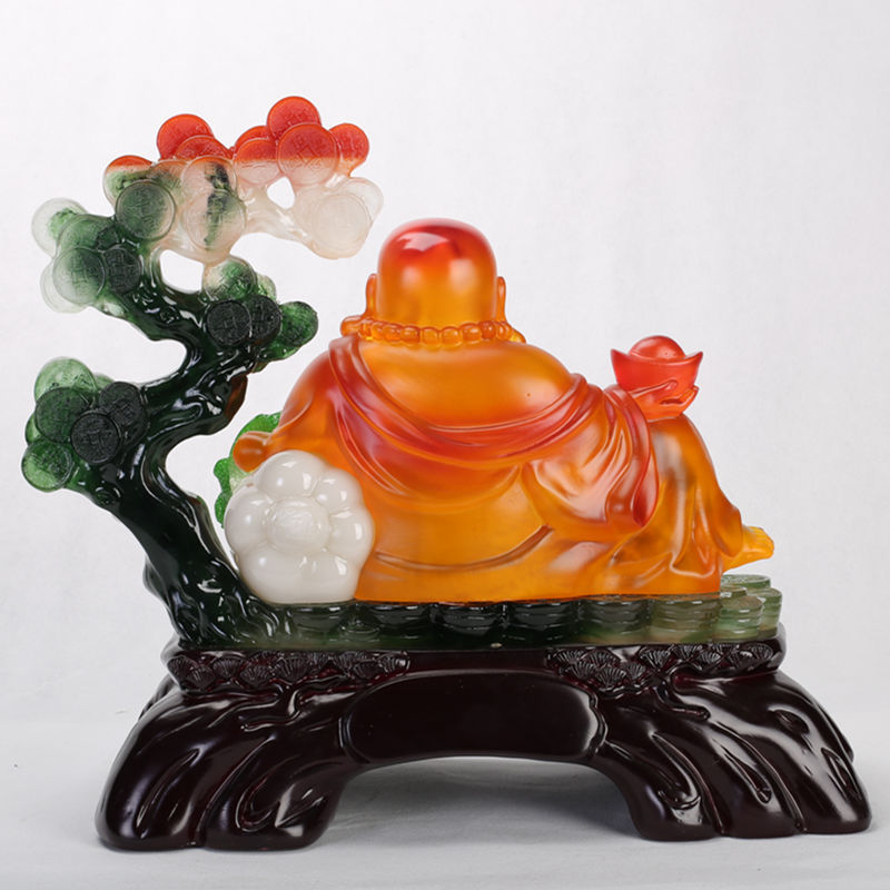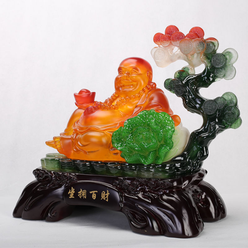 大肚弥勒佛像摆件 笑佛平安发财琉璃翠黄玉摆设家居开业店铺礼品