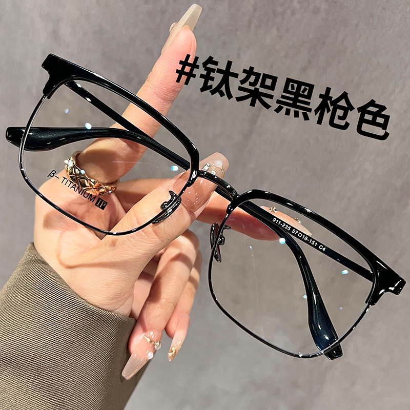 超轻钛架磨砂黑色半框眼镜痞帅男可配近视度数大框显脸小眼睛镜架
