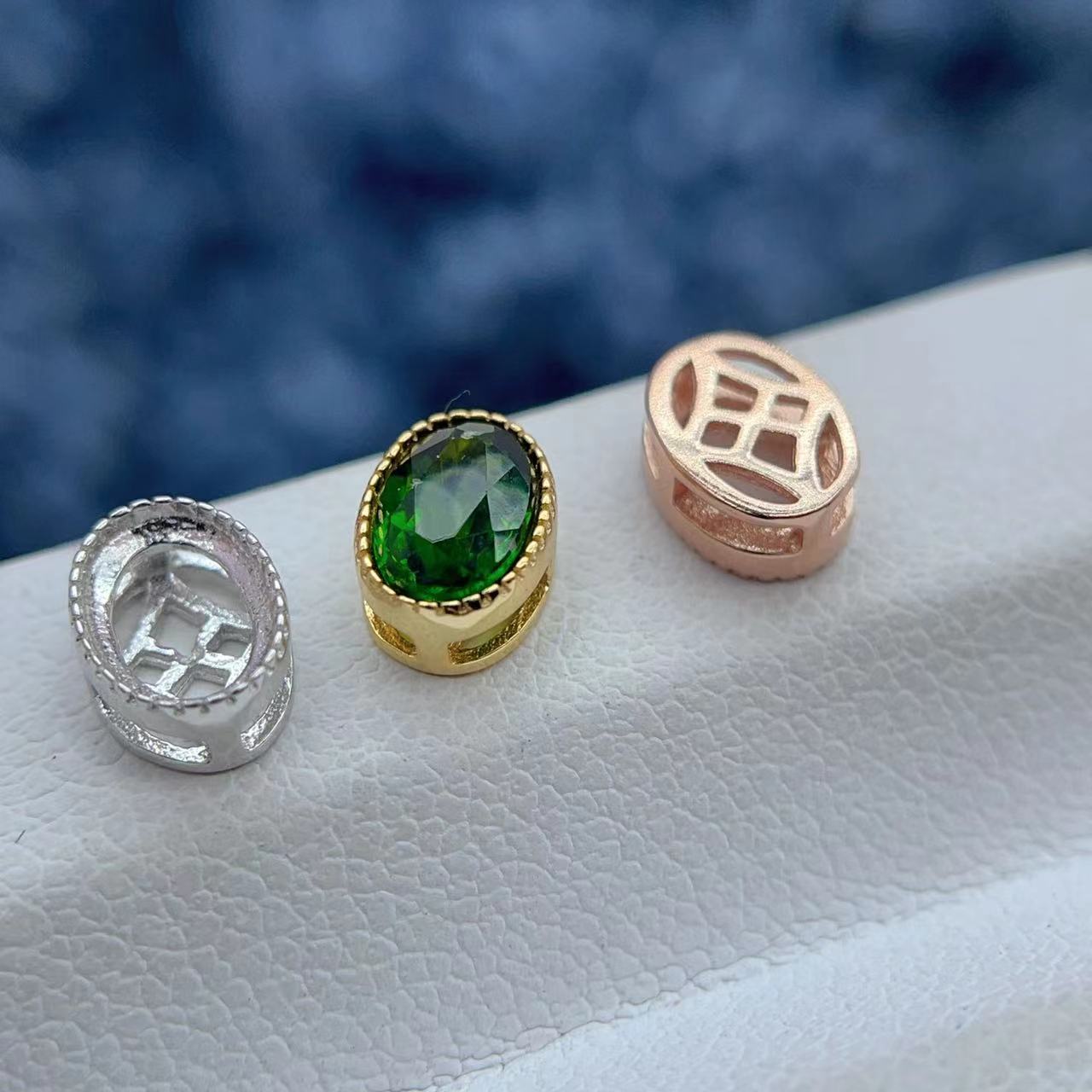 S925纯银吊坠空托椭圆形4*6/5*7/6*8/7*9/8*10mm穿珍珠路路通包镶