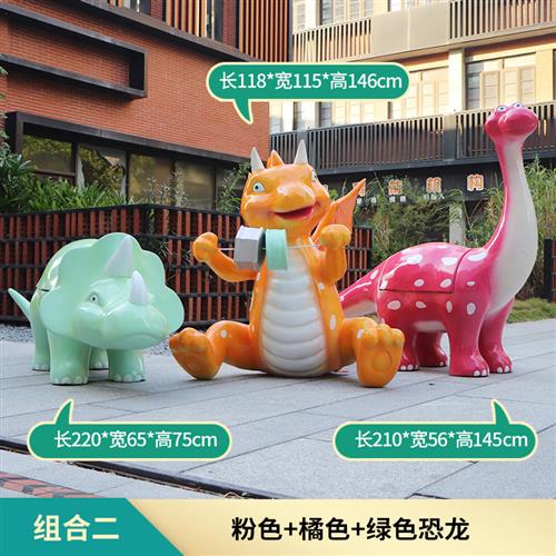 户外创意卡通恐龙休闲座椅玻璃钢雕塑庭院幼儿园装饰动物坐凳摆件