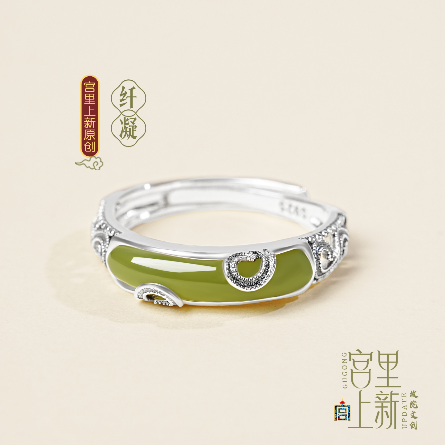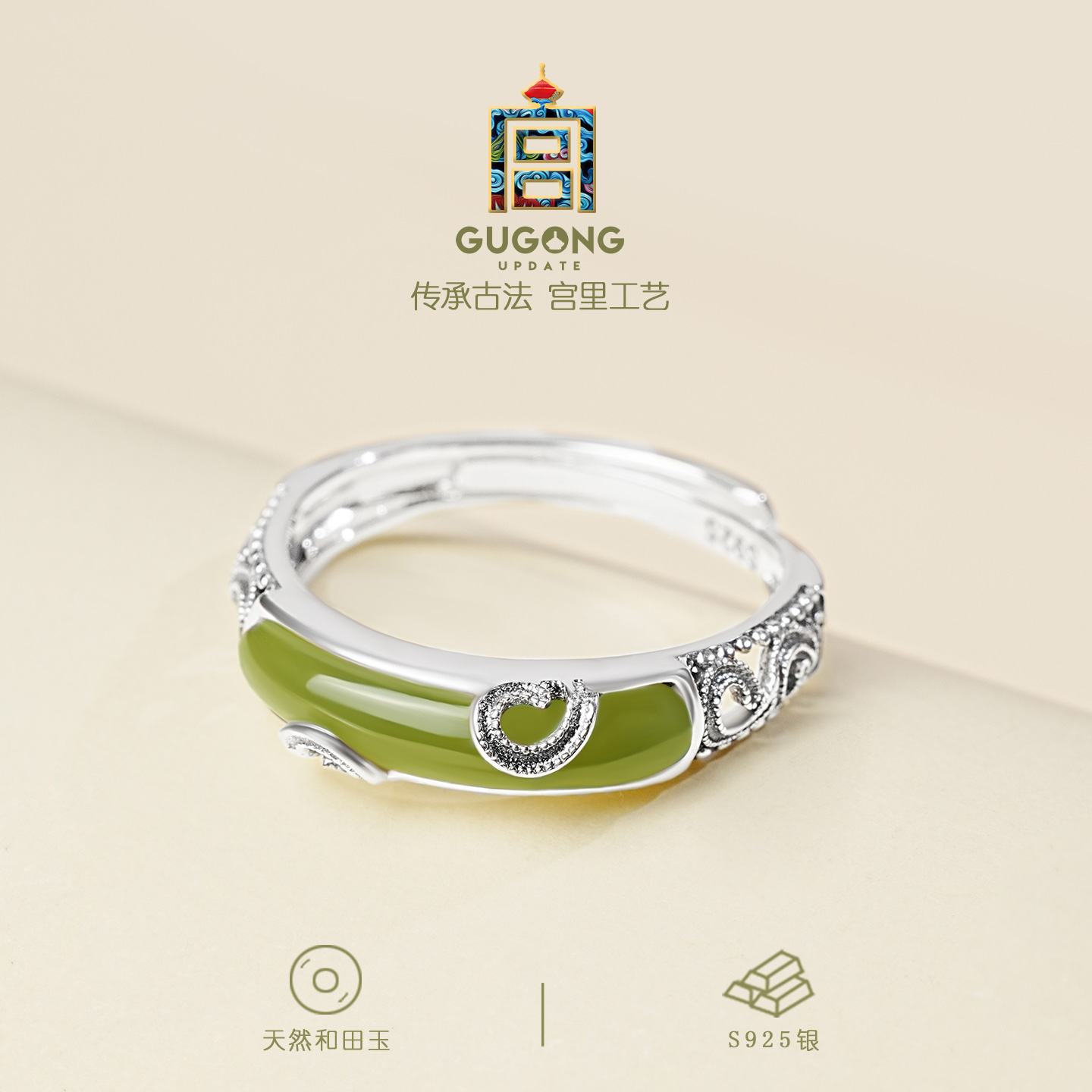 宫里上新和田玉戒指女正品纯银玉石指环食指复古生日礼物送妈妈